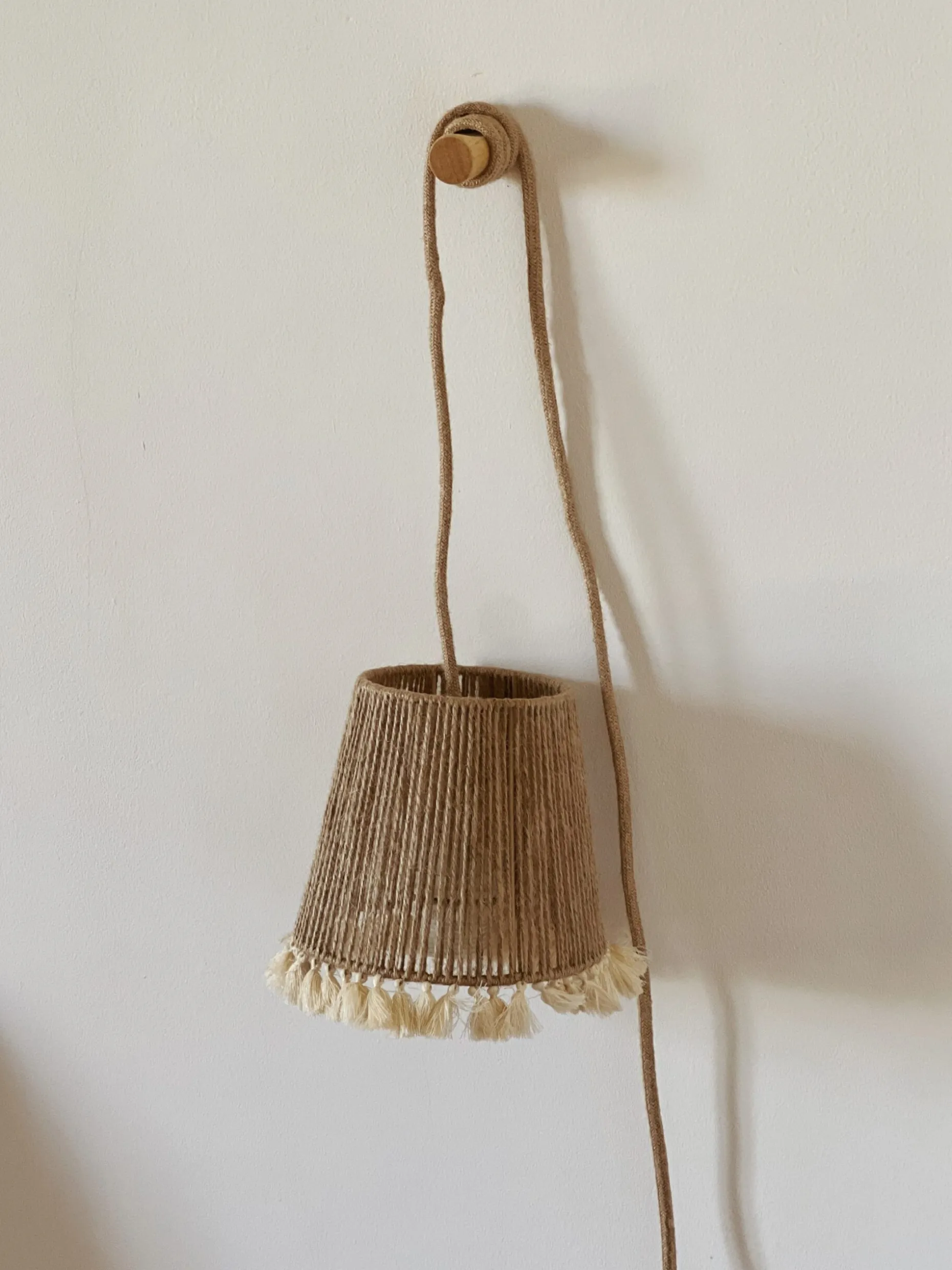 Petit abat jour jute naturel avec un joli détail de pompons. Ce luminaire peut être utilisé en suspension comme présenté sur les photos. Idéale de part et d’autre d’un lit cette suspension trouvera parfaitement sa place pour éclairer une chambre.