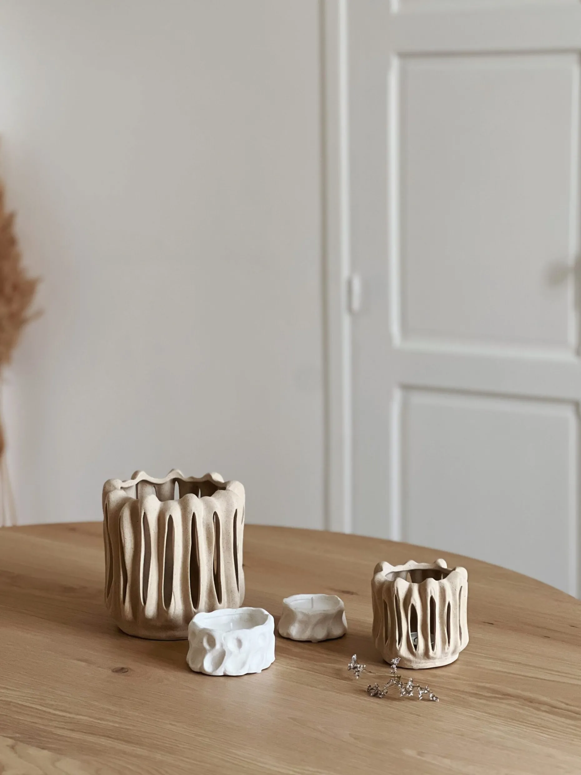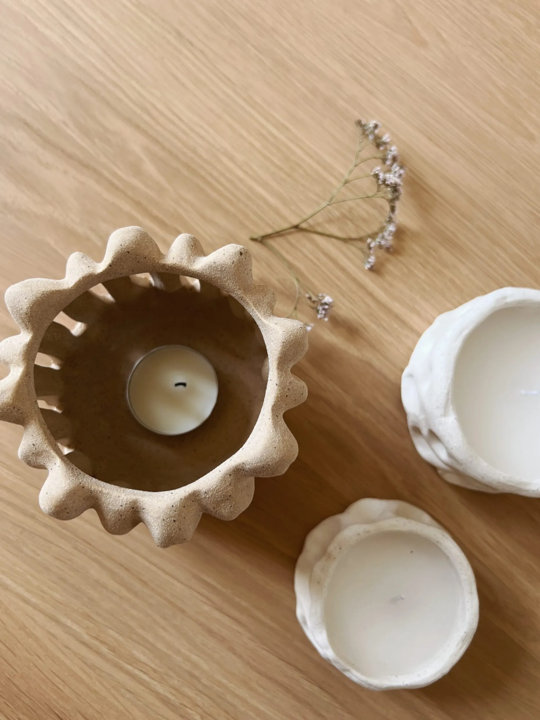 Bougeoir céramique beige qui sera parfait pour dresser vos bougies. Cet accessoire déco vous permettra de créer une ambiance cosy et agréable dans votre intérieur. Fabriqués en céramique ces bougeoirs dispose d’un design original.