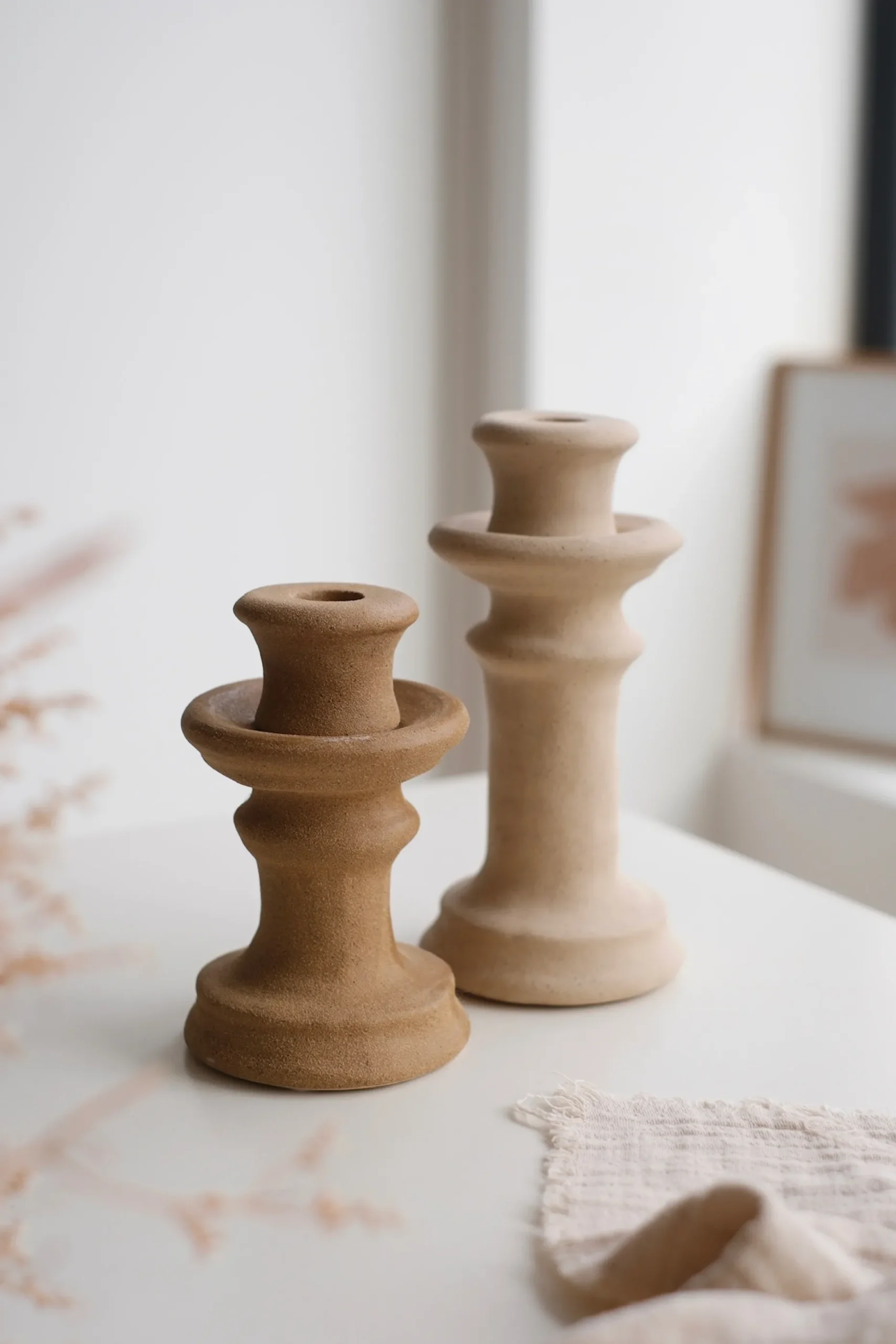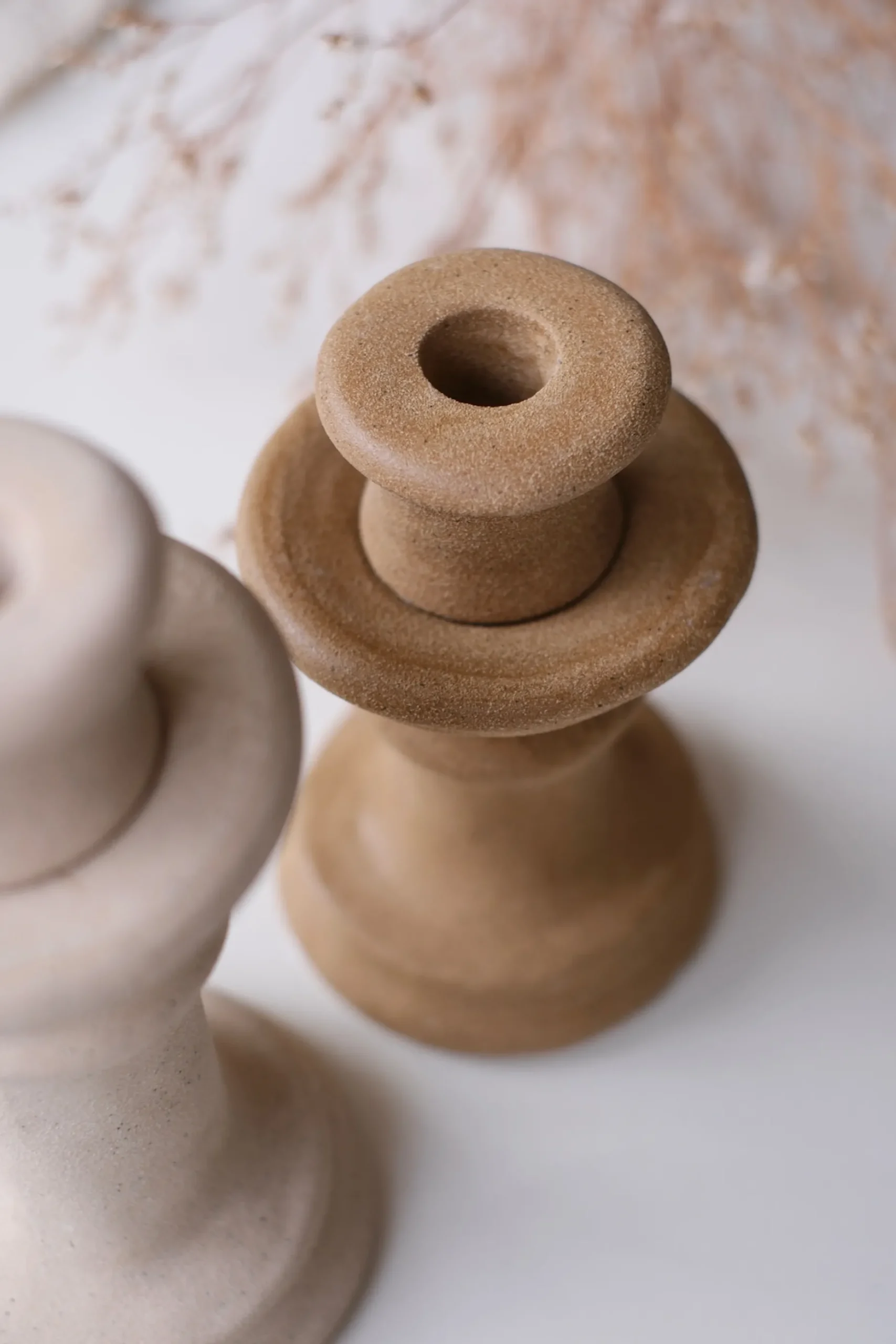 Ce bougeoir en céramique affiche un design sculpté aux lignes harmonieuses inspirées de l’artisanat méditerranéen. Sa finition texturée mat révèle la beauté brute de la céramique. Aussi élégant seul qu’objet décoratif qu’accompagné d’une bougie effilée, il habille votre table, console ou cheminée. Disponible en deux tailles et coloris pour composer votre propre mise en scène : modèle S aspect terre cuite ou modèle M crème.