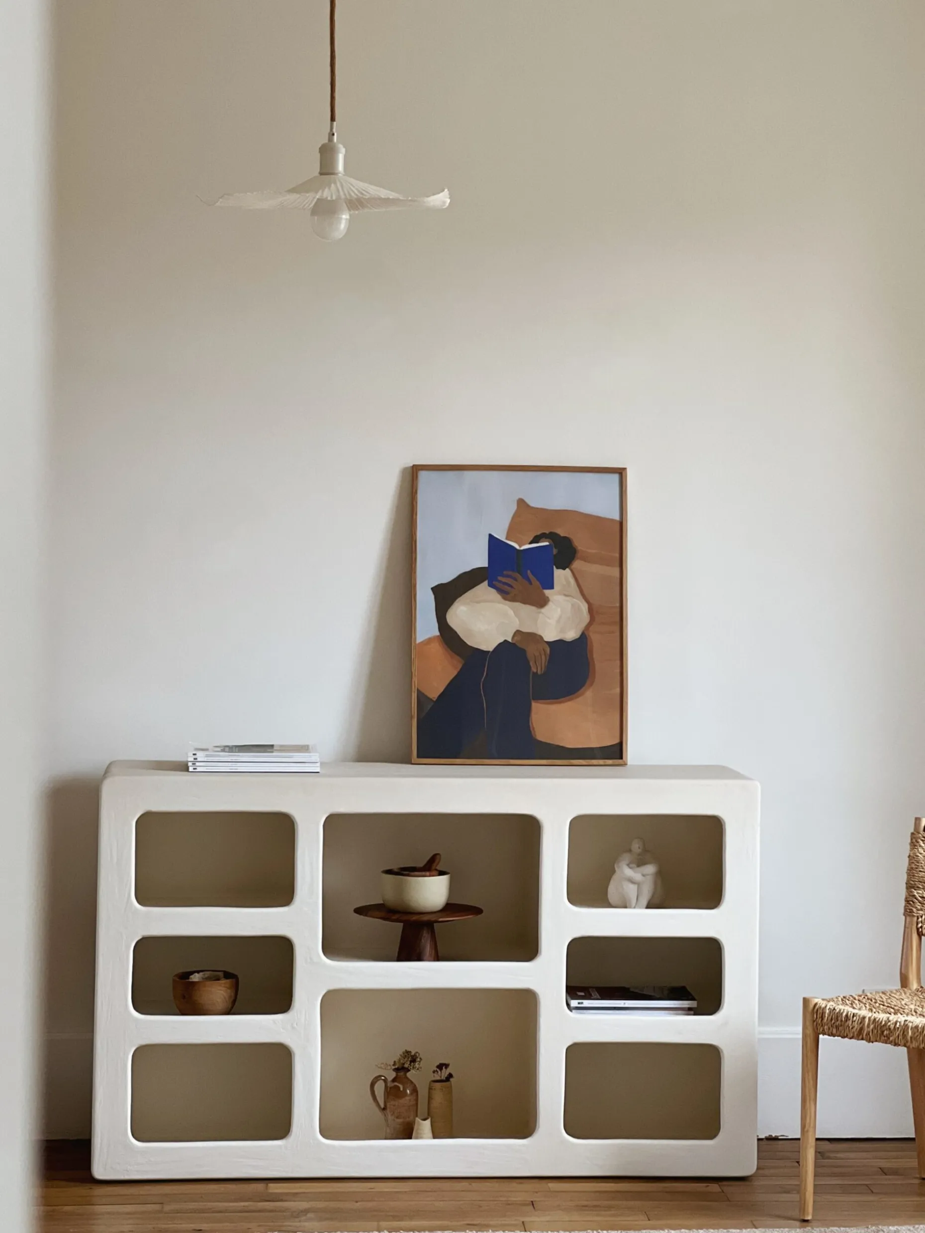 Vous apprécierez l’effet béton ciré et la texture imparfaite qui donne tout le charme à ce meuble. Les niches aux formes irrégulières apporteront de l’originalité à votre intérieur.