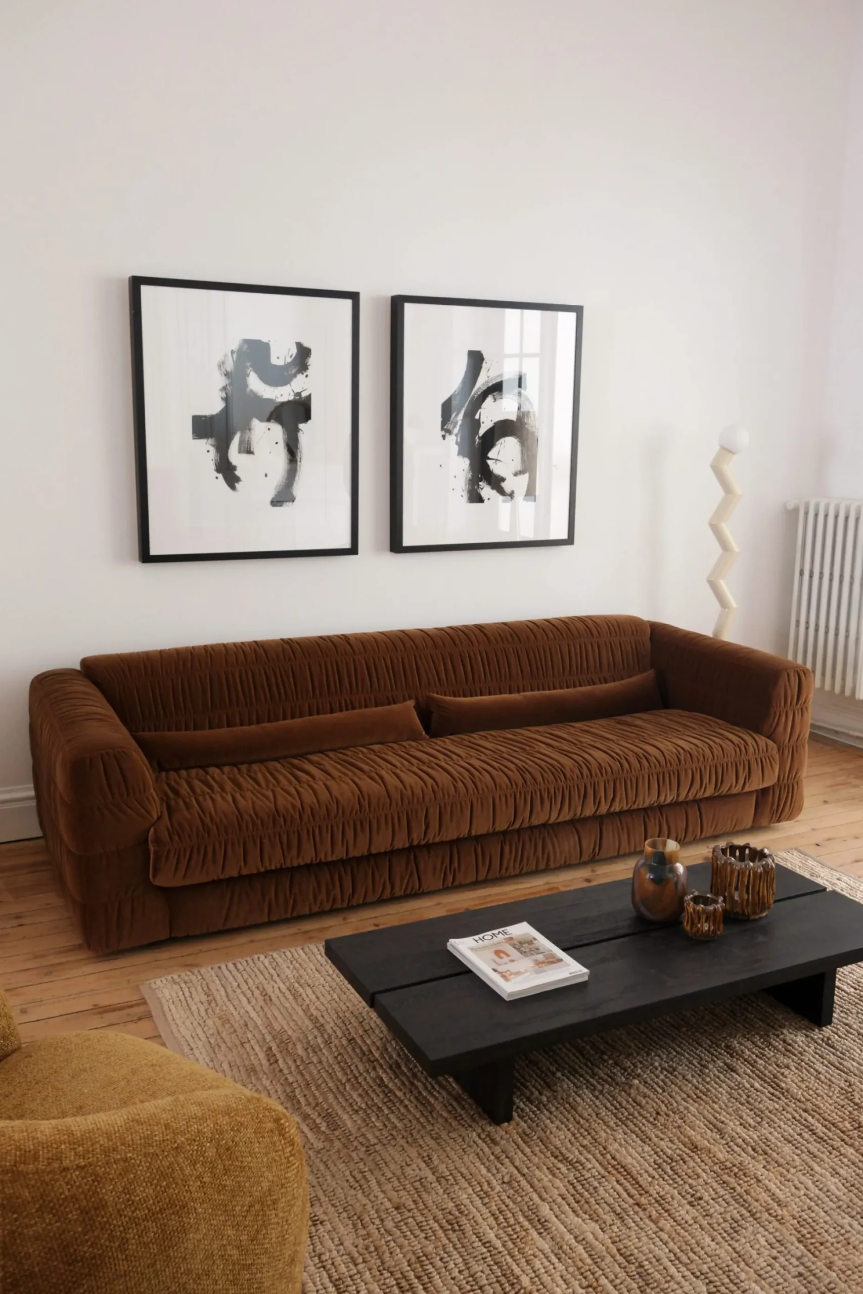 Ce canapé 4 places en velours caramel incarne l’élégance et le confort. Avec ses lignes généreuses et son revêtement en velours doux, il apporte une touche chaleureuse à votre intérieur. Idéal pour les moments de détente, il s’intègre parfaitement dans un salon contemporain ou vintage.
