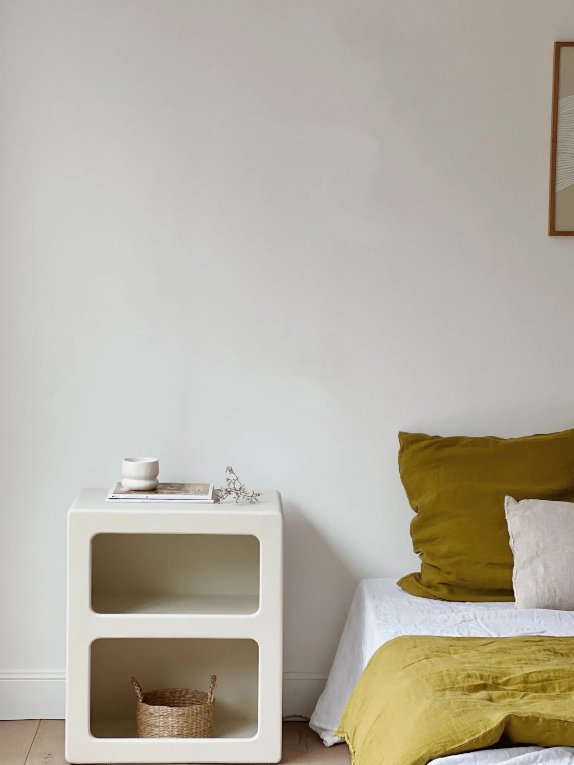 Le chevet effet béton ciré blanc cassé présente un design moderne parfait pour décorer une chambre à coucher. Composé d’une structure en bois enduit à la chaux.