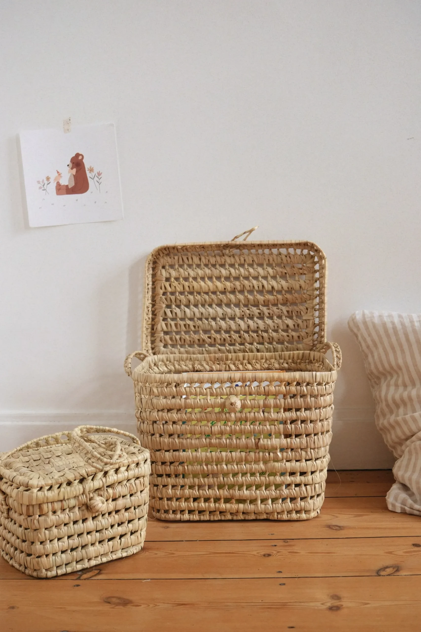 Coffre de rangement en osier entièrement tressé à la main, idéal pour organiser l’espace tout en conservant un style naturel et épuré. Chaque pièce est unique : les dimensions et les finitions peuvent légèrement varier en raison de la fabrication artisanale.