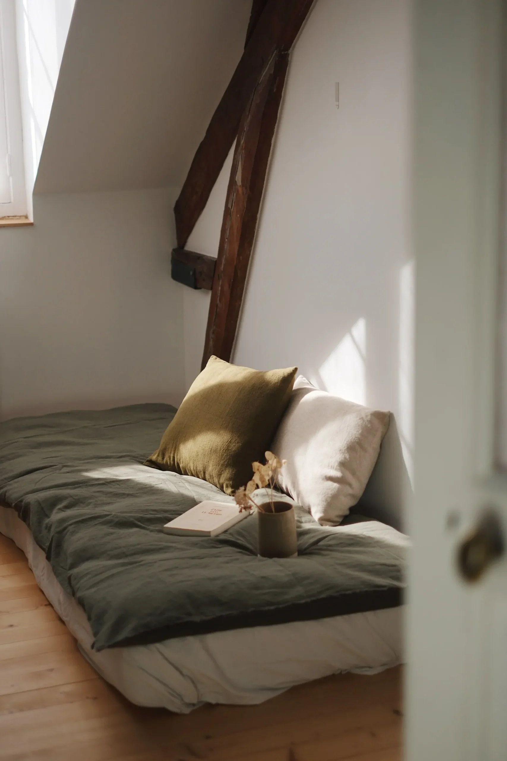 Disponible en deux formats et deux coloris, il vous permet de composer librement votre ambiance : en camaïeu naturel pour une atmosphère apaisante, ou en ajoutant la version olive pour une touche de contraste végétal.