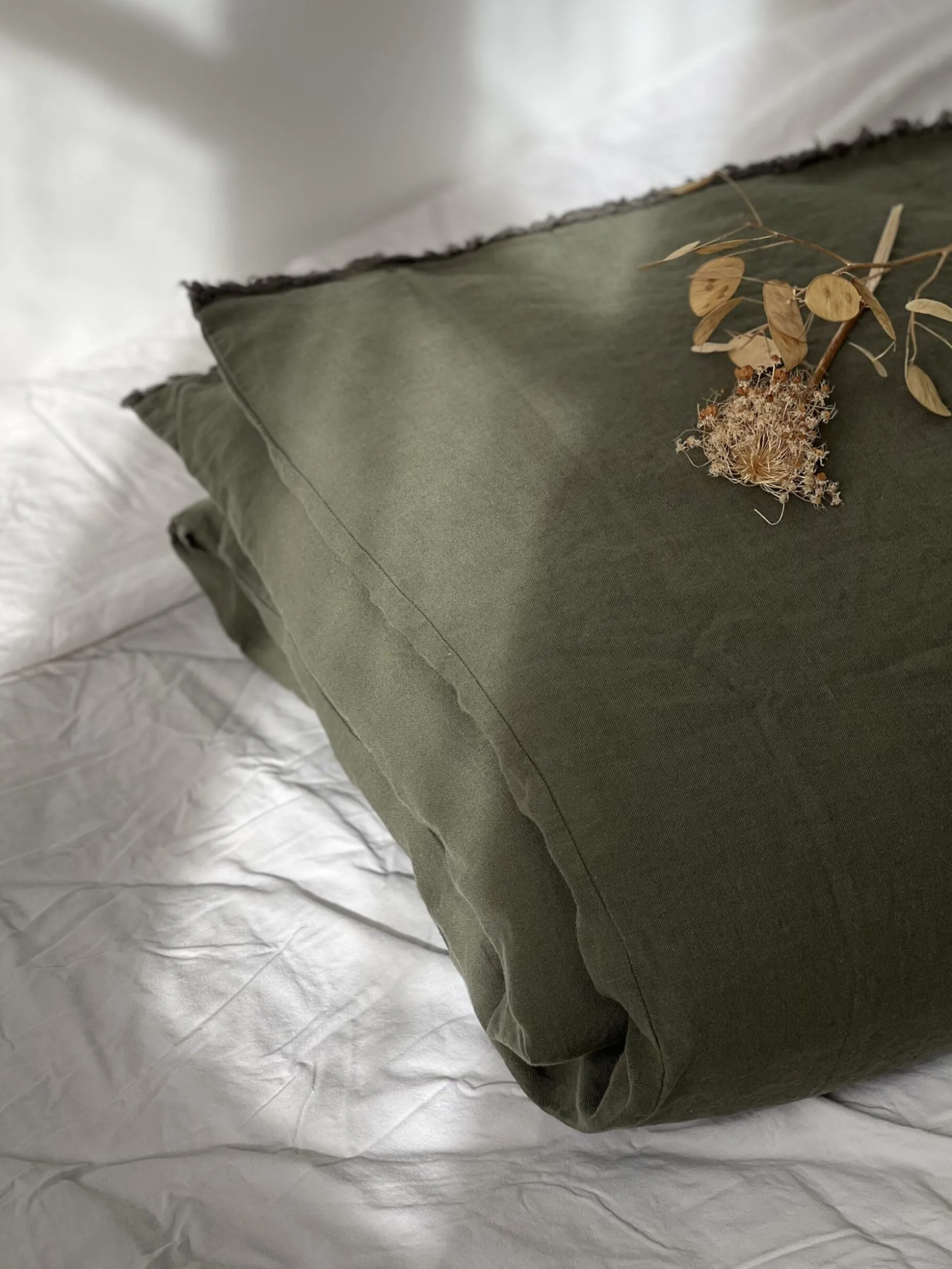 Son tissu texturé et sa couleur kaki naturelle lui permettent de s’intégrer aussi bien dans une décoration bohème que contemporaine.