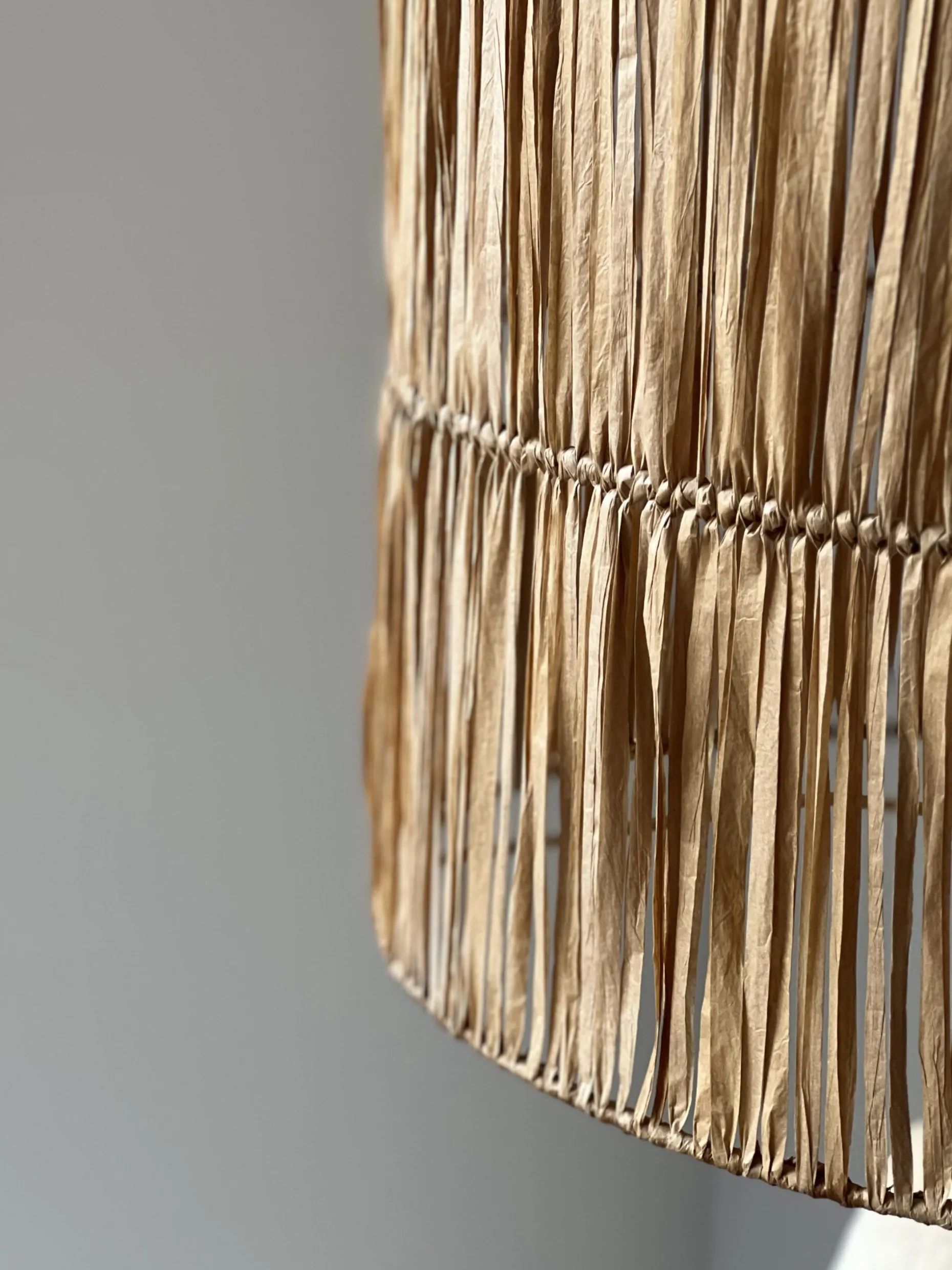 Matériau : lampe en papier mâché – abat jour en raphia