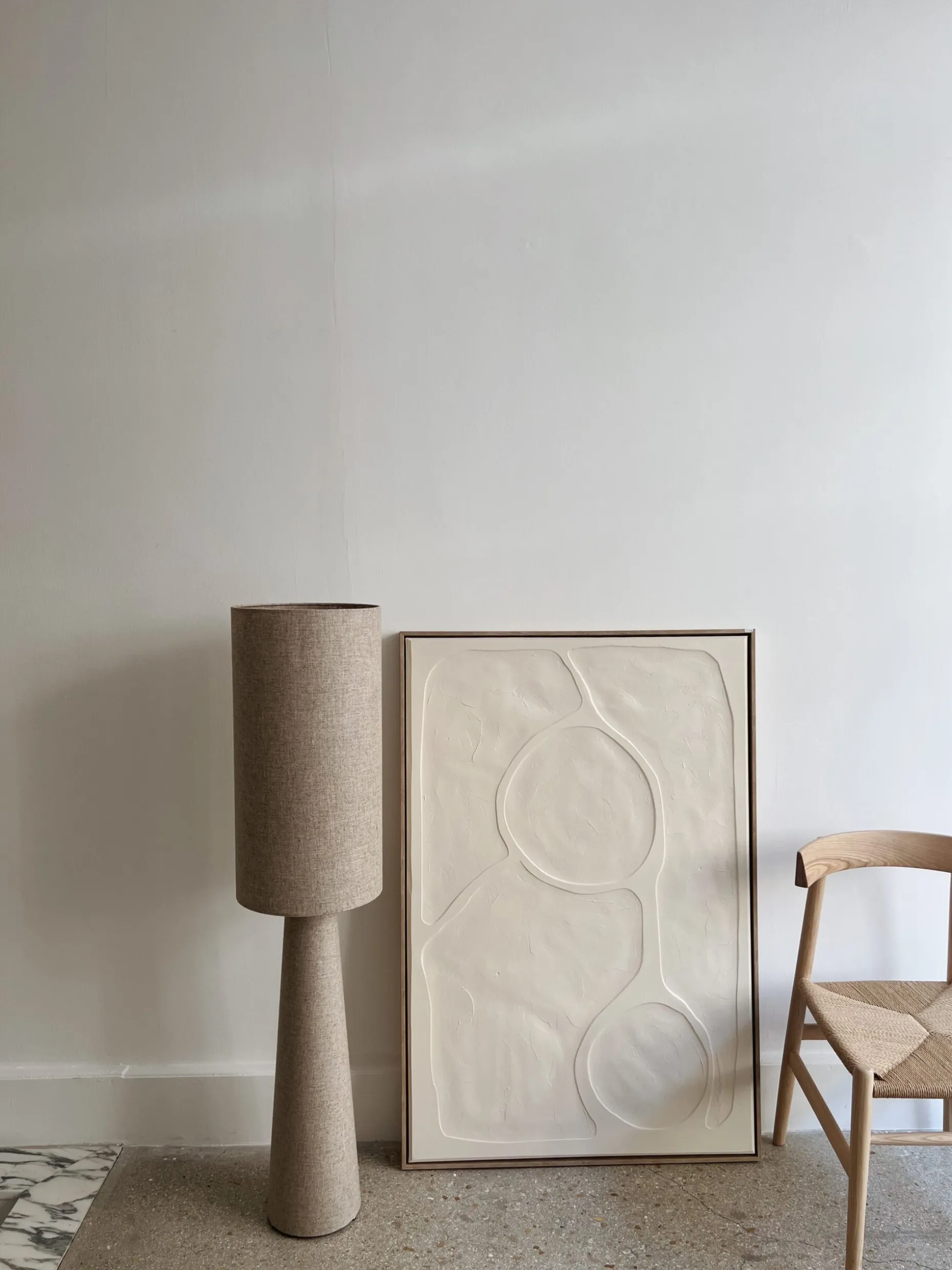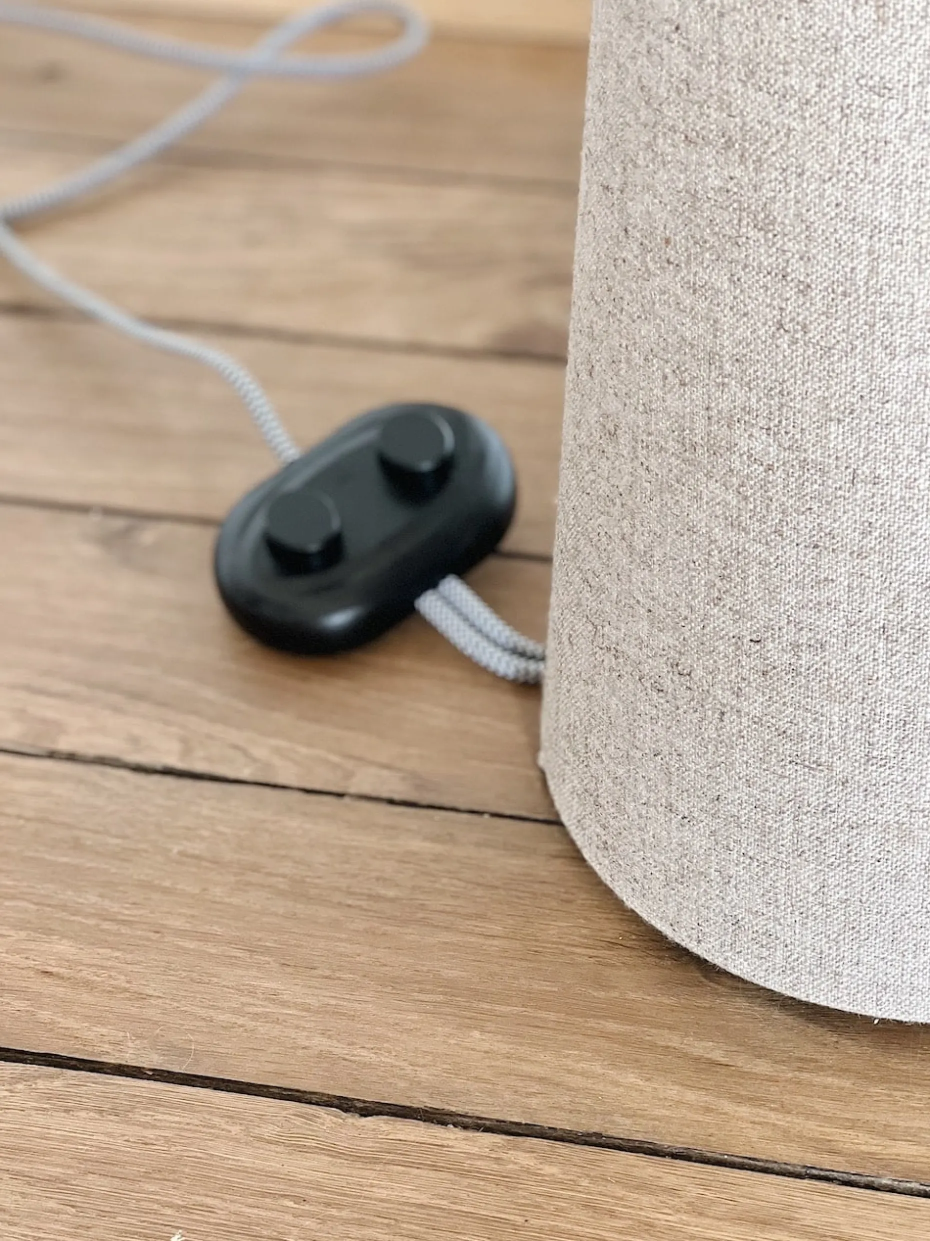 Joli lampadaire en lin naturel est composé d’un abat jour cylindrique et d’un pied conique ! Vous apprécierez le design épuré de cette lampe de sol. Le petit plus : la totalité de la lampe s’allume, l’abat + le pied, ce qui apportera une jolie lumière cosy à votre intérieur