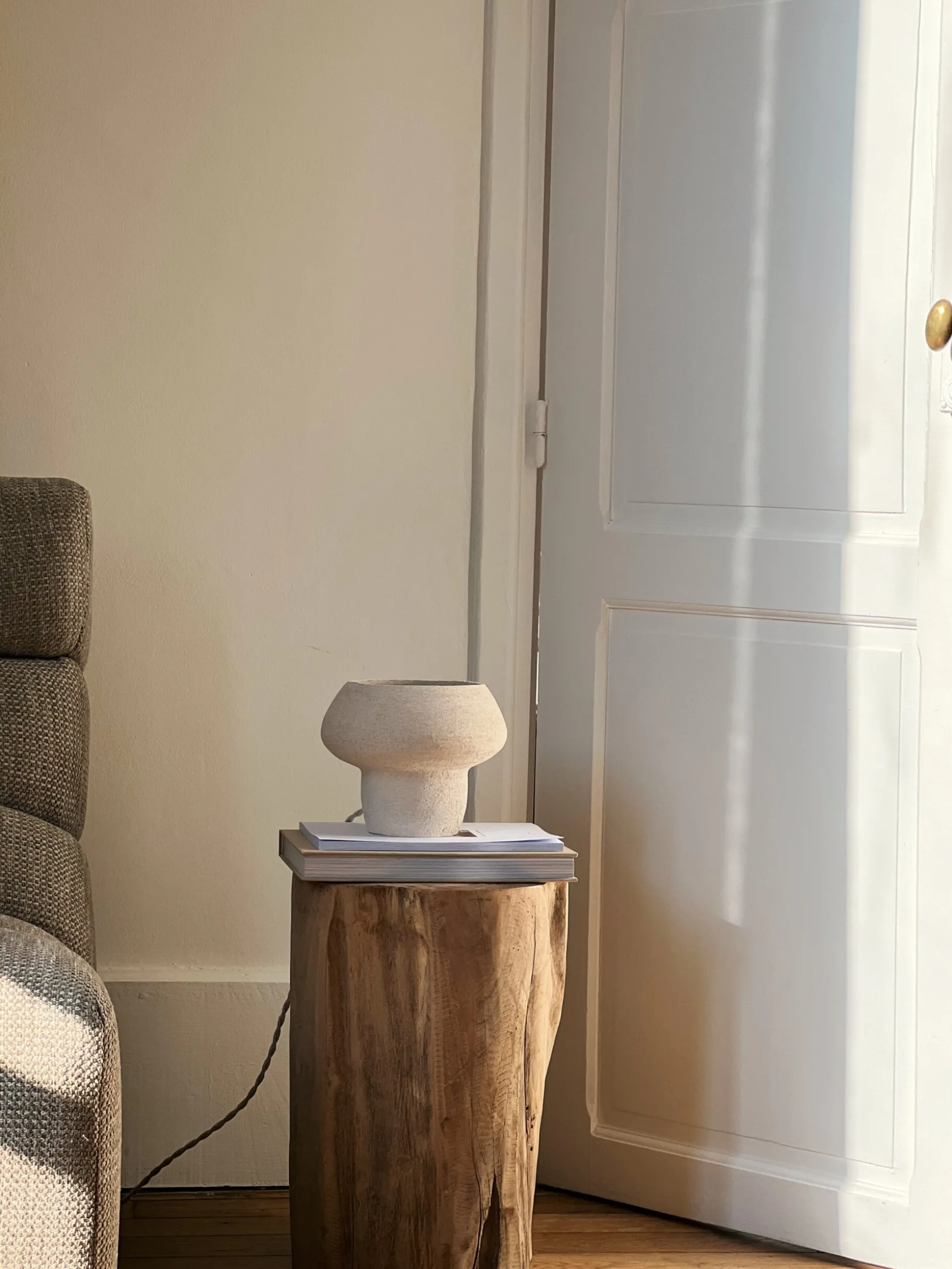 Lampe en céramique entièrement réalisée de façon artisanale. Modelée à la main, cette jolie lampe est en grès blanc chamotté. Objet artisanal par excellence, la lampe en grès « champignon » viendra donner une touche design à votre intérieur.
