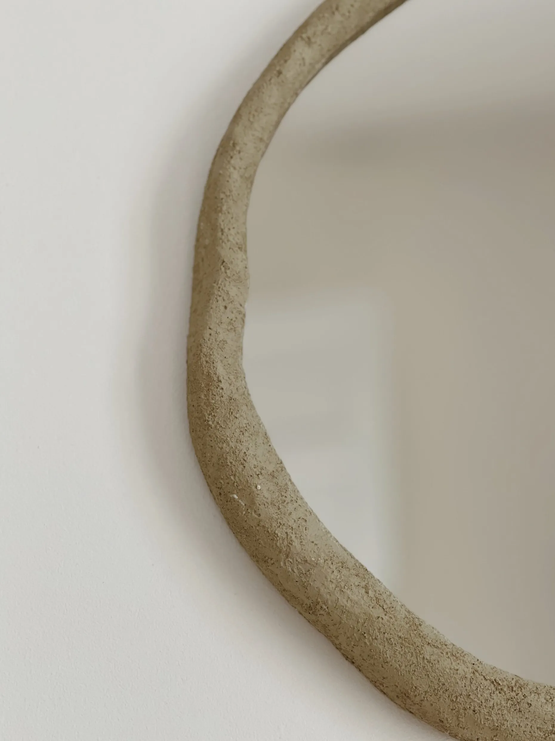 Le miroir en résine peut être utilisé comme miroir fonctionnel dans votre chambre ou comme détail décoratif dans votre salon ou votre hall d’entrée. Le cadre du miroir est en polyrésine avec une texture brute et la belle forme organique du miroir ajoute une allure moderne et élégante à n’importe quel intérieur.
