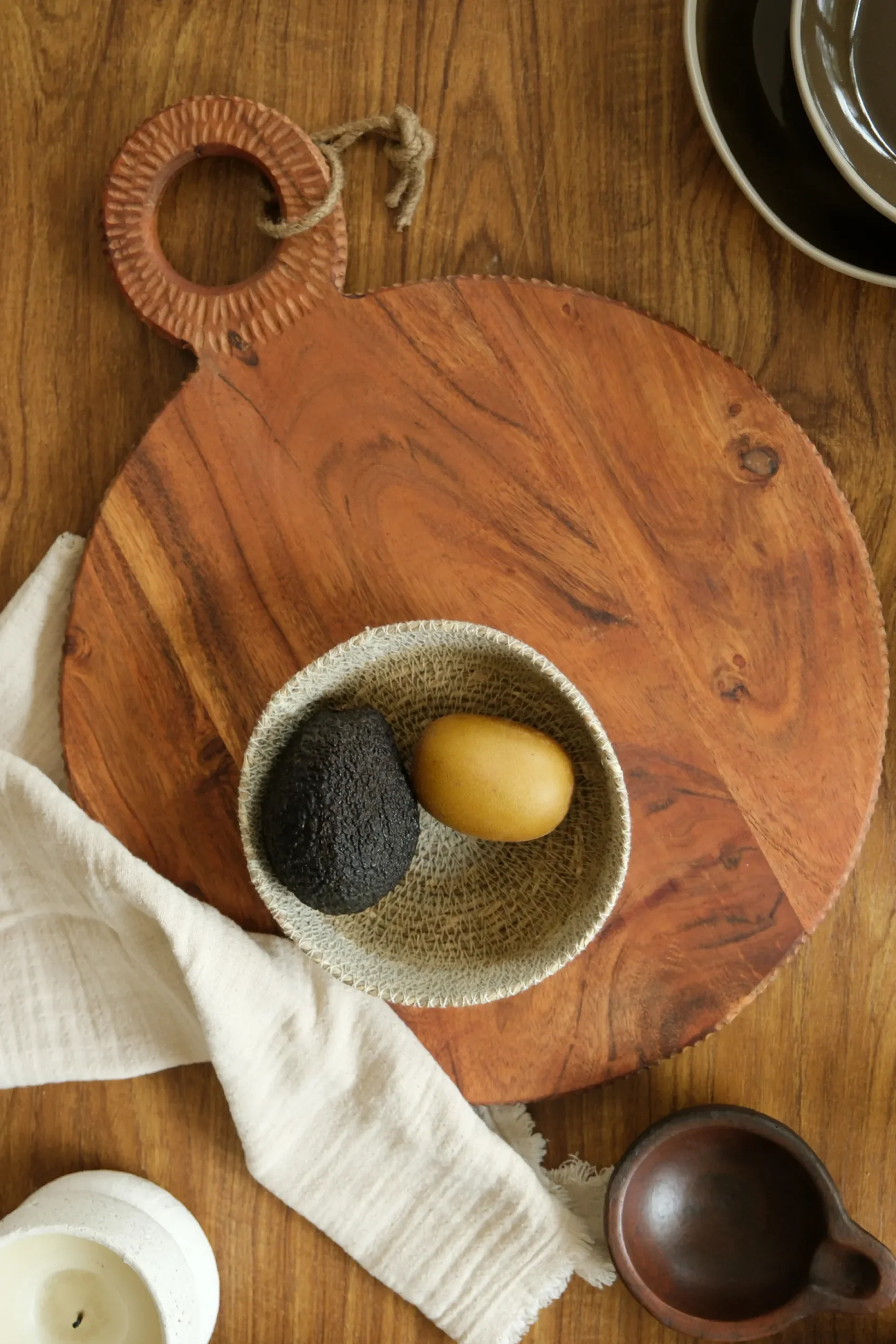 Ces planches à découper artisanales révèlent toute la noblesse du bois d’acacia certifié FSC. Chaque pièce est fabriquée à la main avec soin, offrant un grain marqué unique et des teintes chaleureuses qui varient naturellement du miel au brun caramel. Le bois d’acacia est reconnu pour sa durabilité exceptionnelle et sa résistance à l’humidité, garantissant une longévité remarquable. Les finitions sculptées sur les bords apportent un relief tactile authentique qui signe le travail artisanal. Disponibles en deux formats complémentaires, ces planches sont polyvalentes : découpe, service, présentation de fromages ou apéritifs.