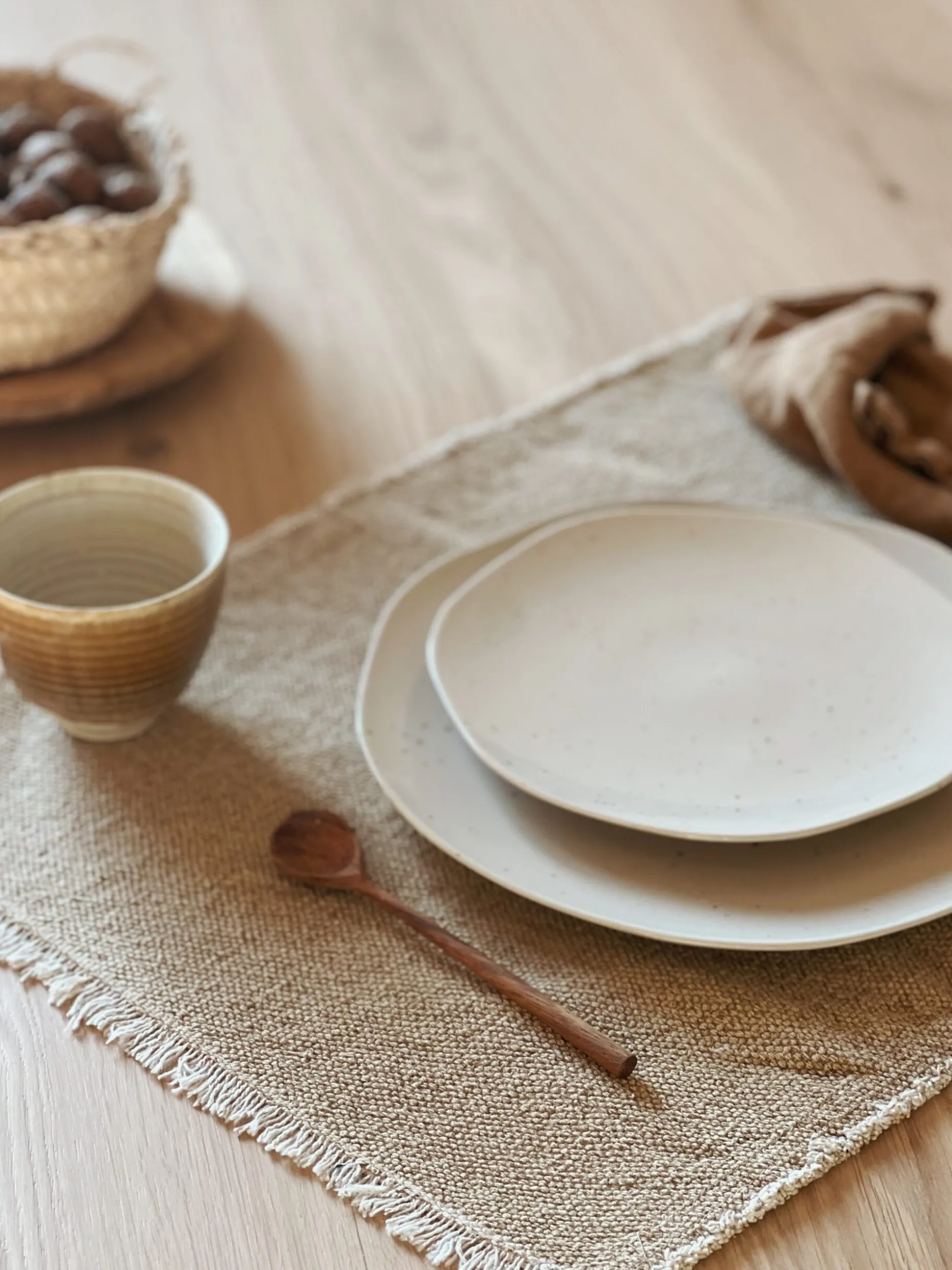 Set de table tissé à la main avec une finition frangée, composé de 85 % de coton et 15 % de viscose. Ces sets de table égayeront vos repas et protégerons votre table de salle à manger tout en élégance.