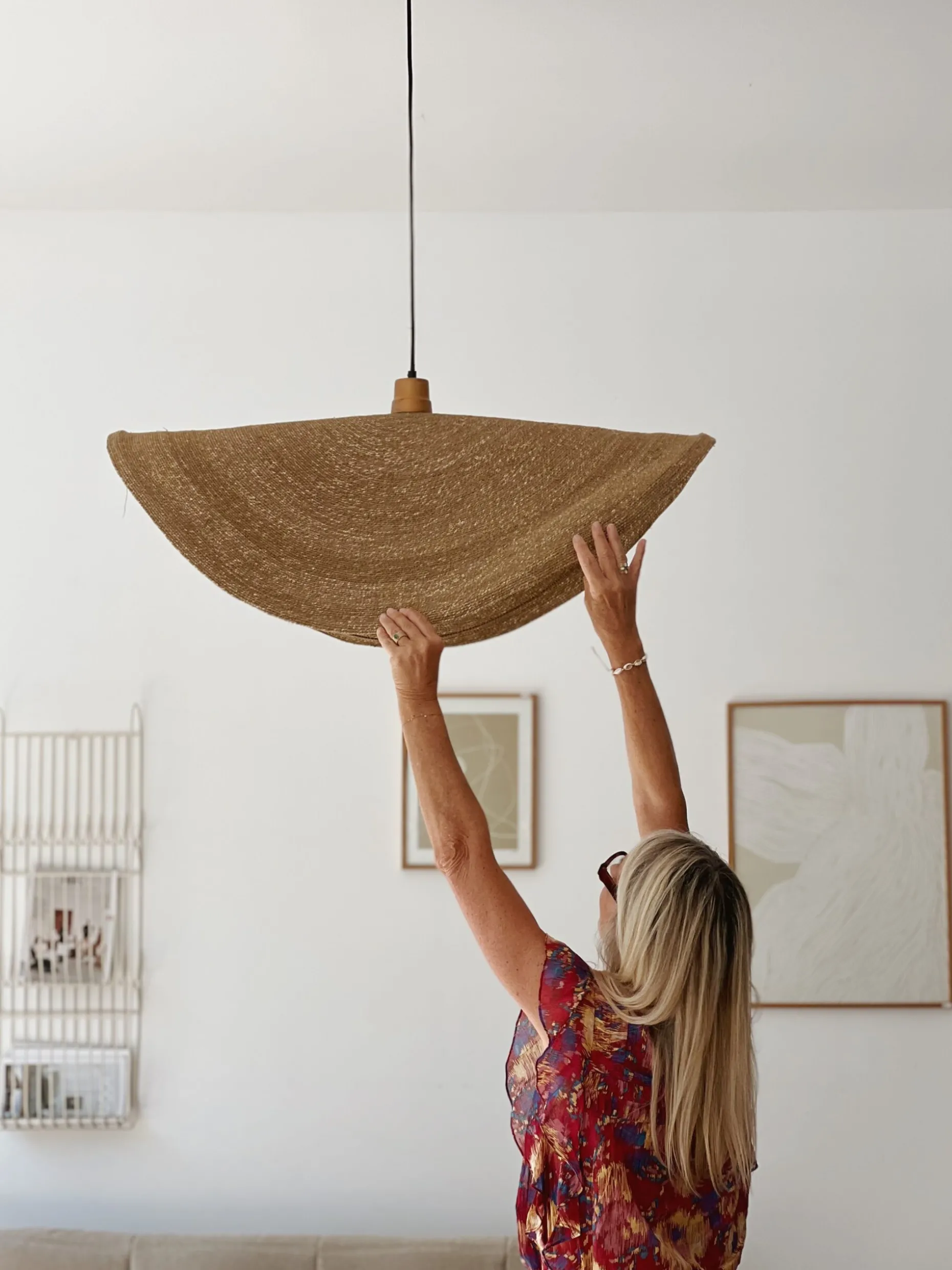 La suspension en capeline souple est réalisée en jonc de mer, elle illuminera votre pièce tout en créant une atmosphère naturelle et cosy. Disponible en 3 tailles différentes.