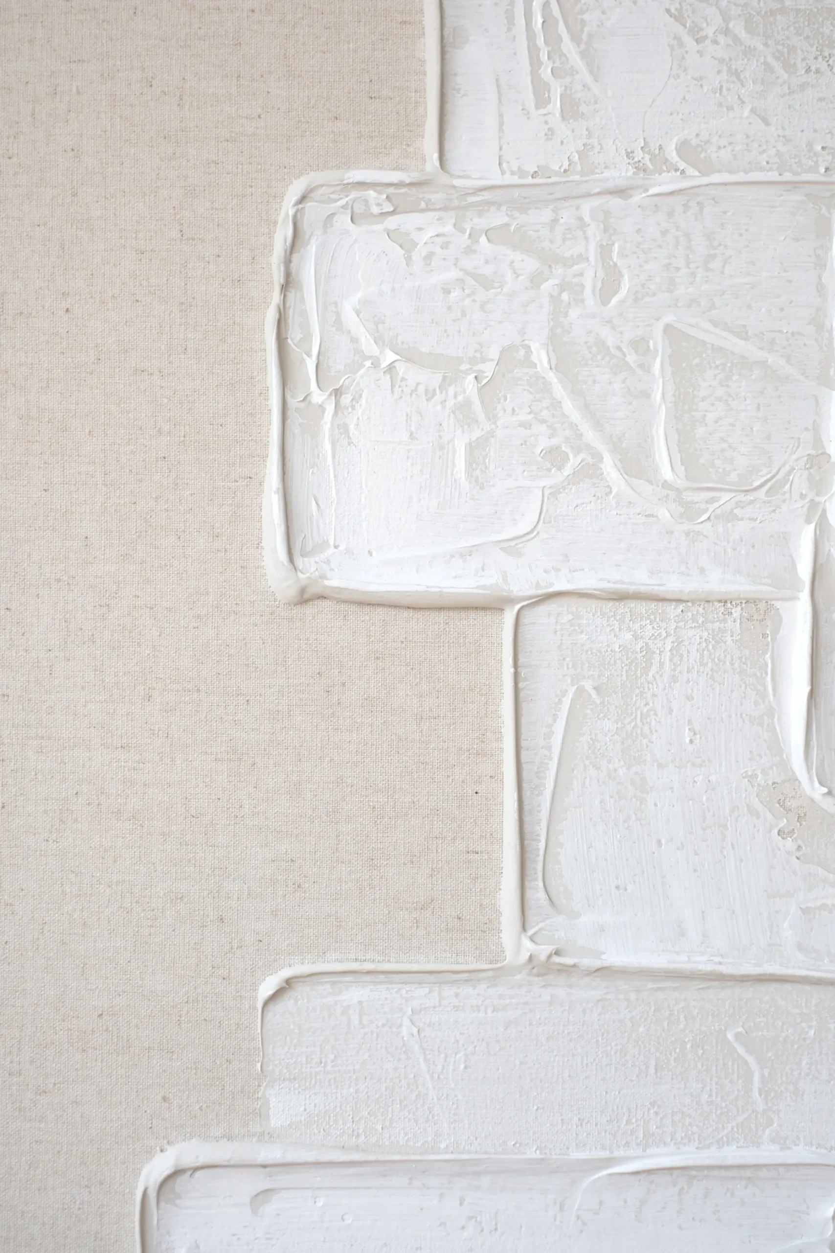 Le tableau décoratif mural Vicenza est une pièce au style épuré et texturé, idéale pour sublimer un mur sans alourdir l’atmosphère. Peinte à la main sur une base en lin naturel, elle présente des motifs en blanc cassé en léger relief. Le travail de matière donne de la profondeur à la composition tout en conservant une grande douceur visuelle.