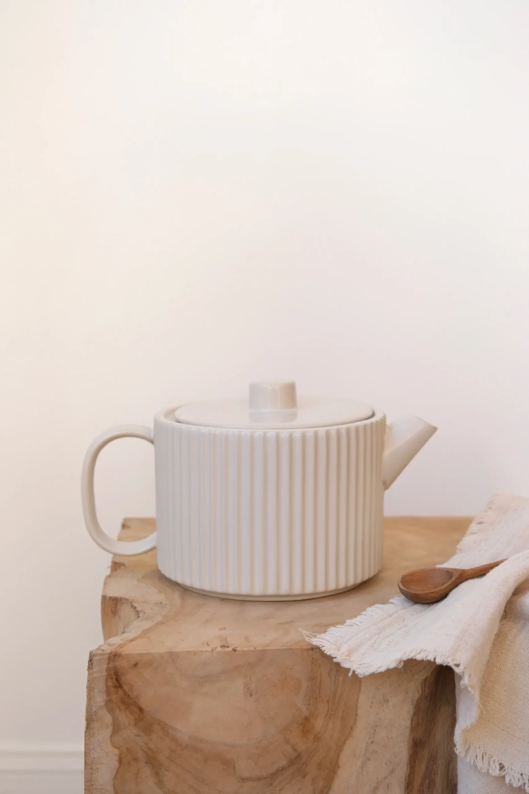 Cette théière en grès écru séduit par son design cannelé raffiné et son approche minimaliste. Fabriquée en grès naturel aux tons doux, elle affiche des rainures verticales délicates qui jouent avec la lumière et apportent une texture subtile à sa surface. Son filtre en inox amovible garantit une infusion optimale de vos thés préférés. Sa contenance généreuse permet de partager de savoureux moments de détente en famille ou entre amis.