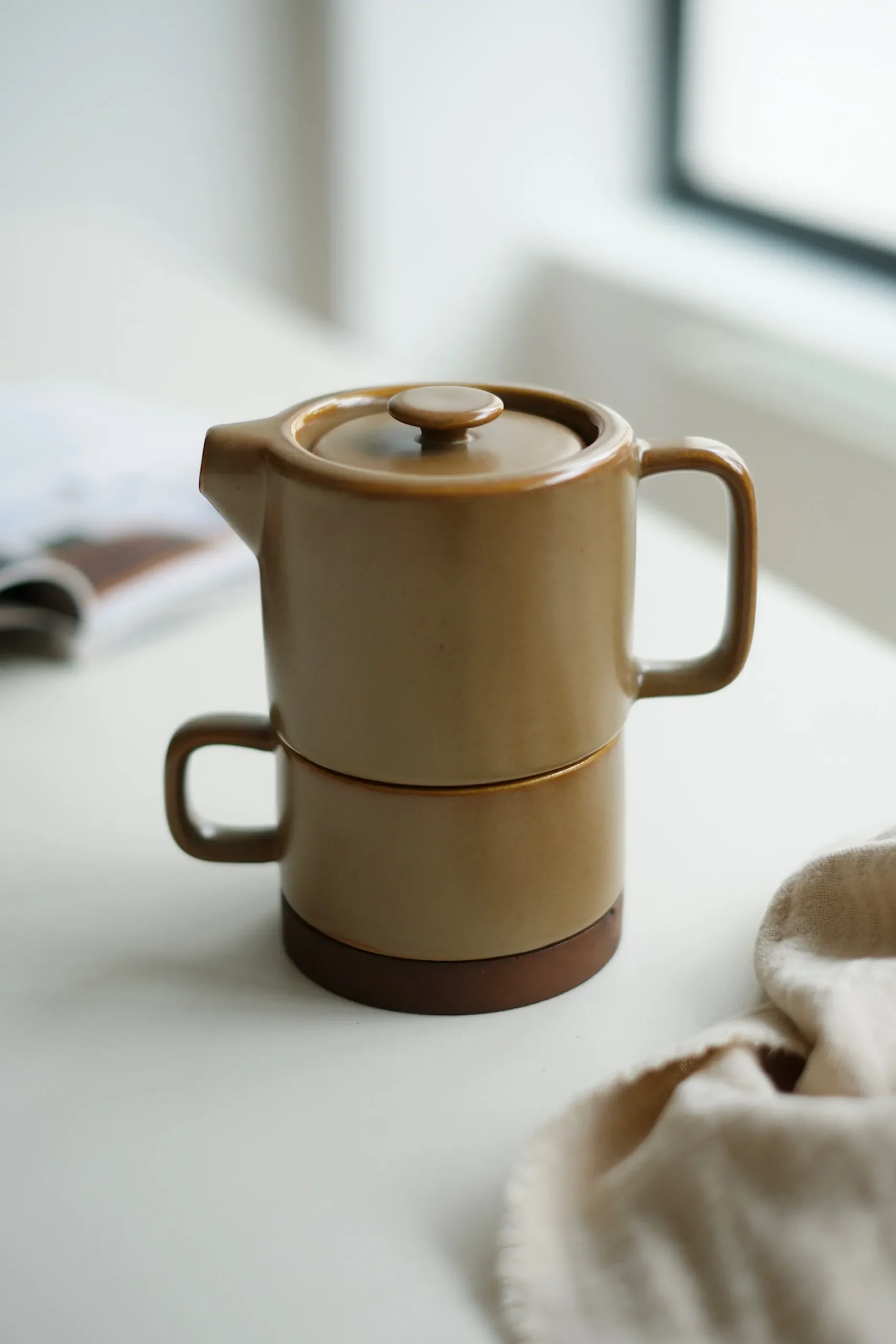 - 1 tasse empilable avec poignée en grès