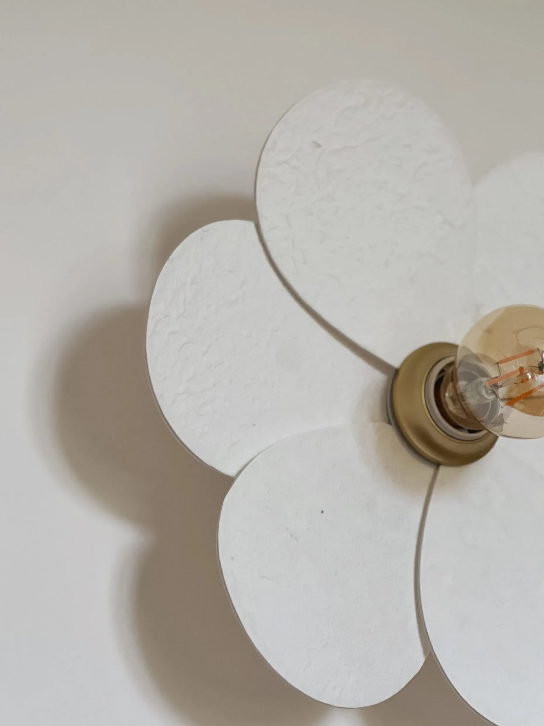 Coup de cœur pour cette applique murale fleur en papier mâché. Composée de 6 pétales de fleur en papier mâché blanc, ce luminaire illuminera votre pièce tout en décorant votre mur.