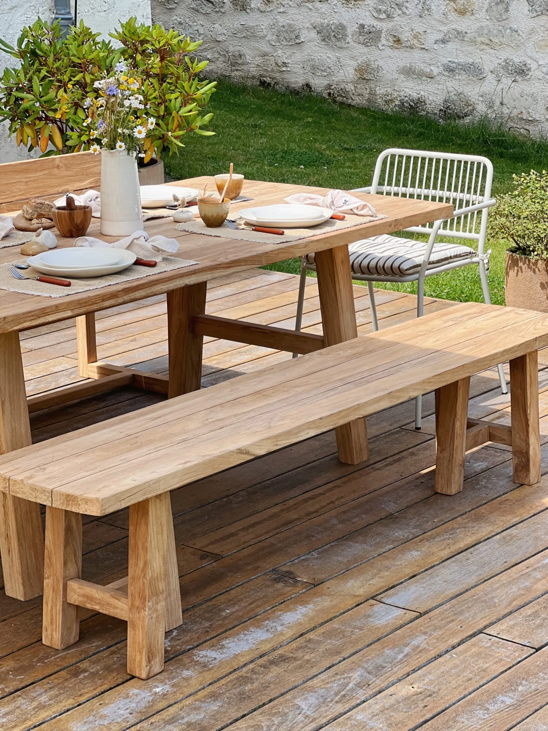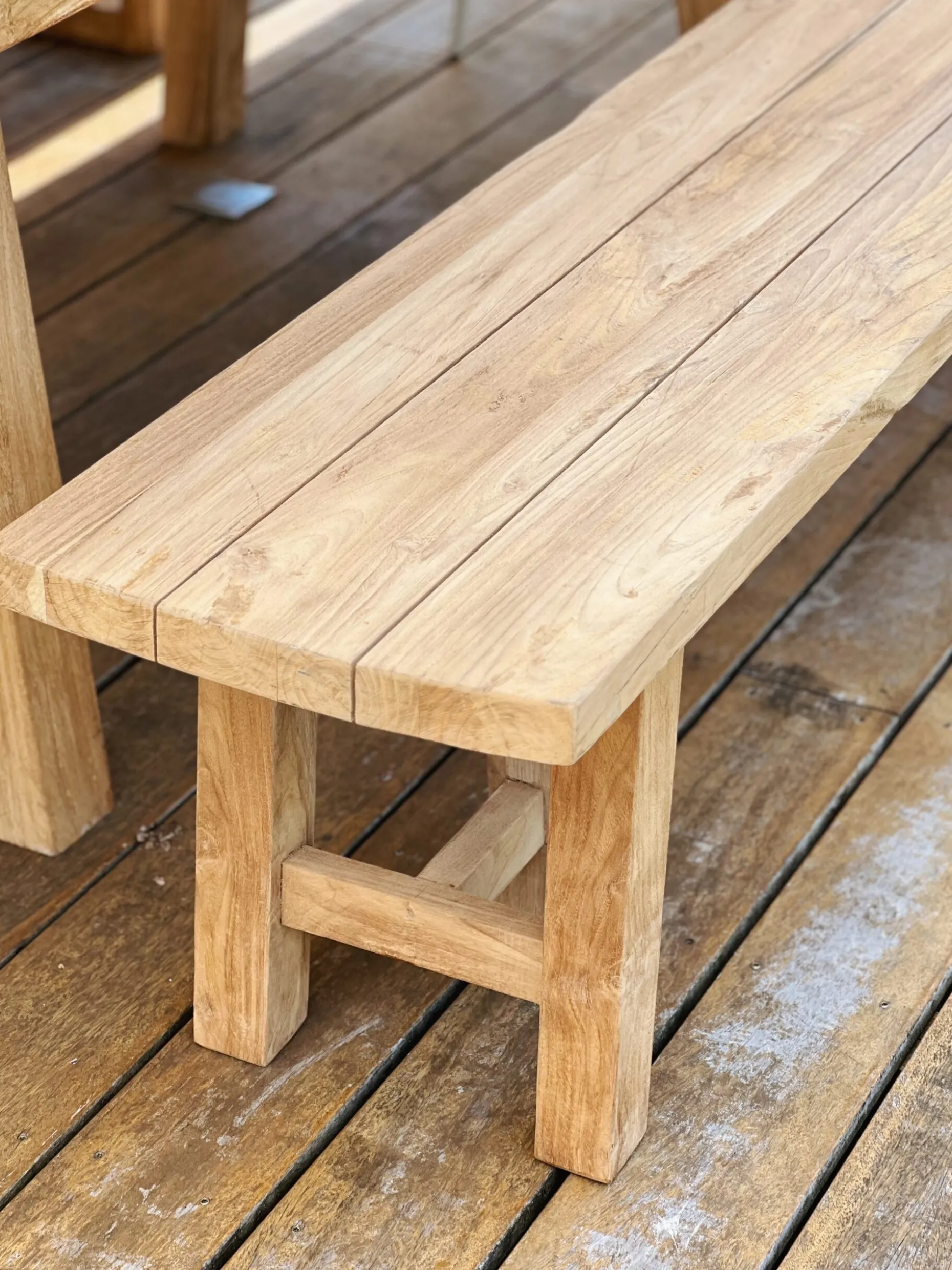 Banc d’extérieur en teck fabriqué à la main en teck recyclé massif. Vous apprécierez son design sobre et épuré et l’aspect brut du bois. Ce banc outdoor vous permettra d’accueillir jusqu’a 3 personnes confortablement. Le charme du teck recyclé apportera du caractère à votre décoration d’extérieur.