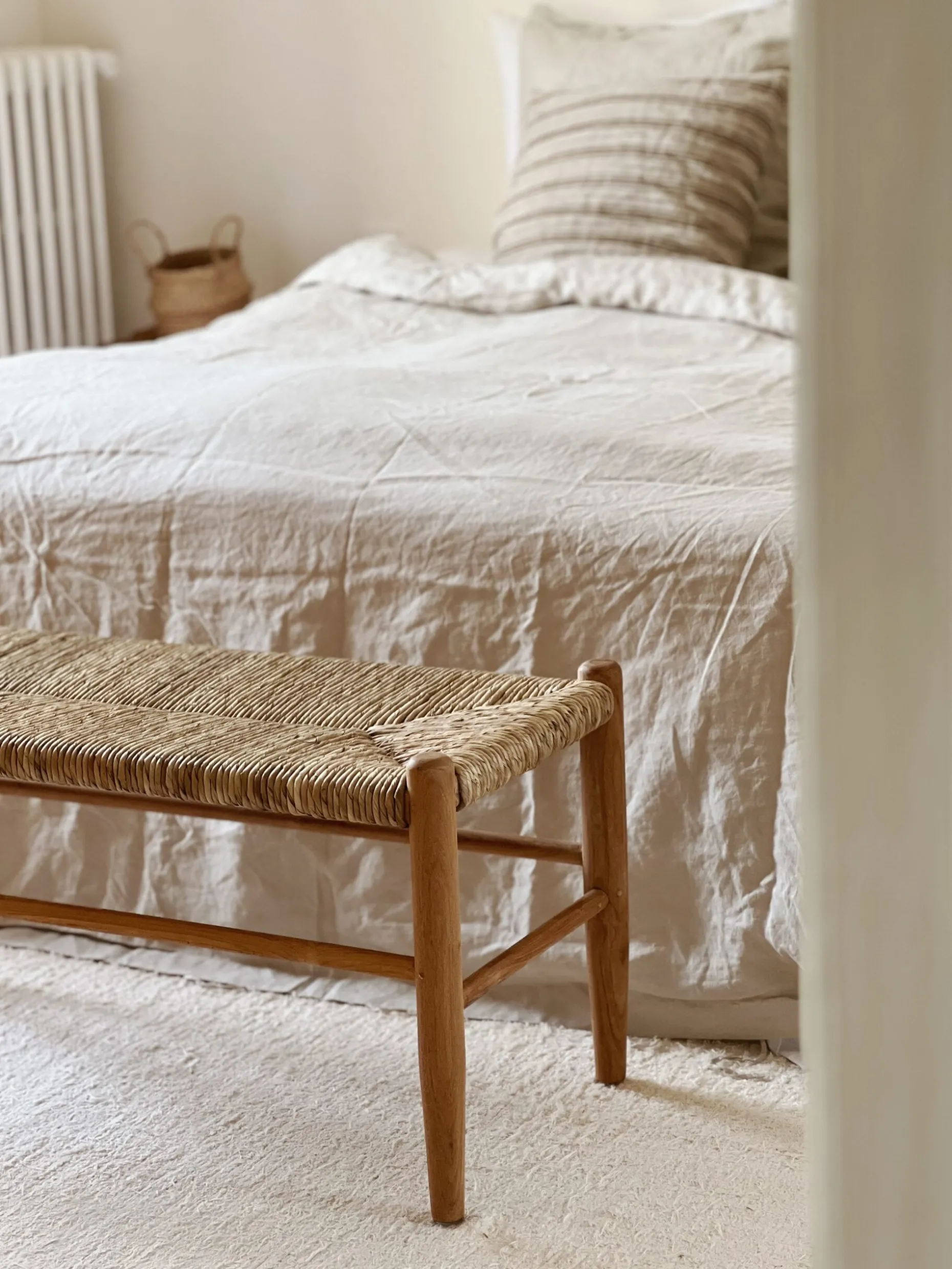 Joli banc en teck et rotin fabriqué à la main composé d’une assise tressée en rotin. Apportez une touche ethnique et bohème à votre décoration. Ce banc banquette s’adapte aux différentes pièces de votre intérieur. Imaginez-le dans votre entrée, en bout de lit ou autour de votre table à manger.