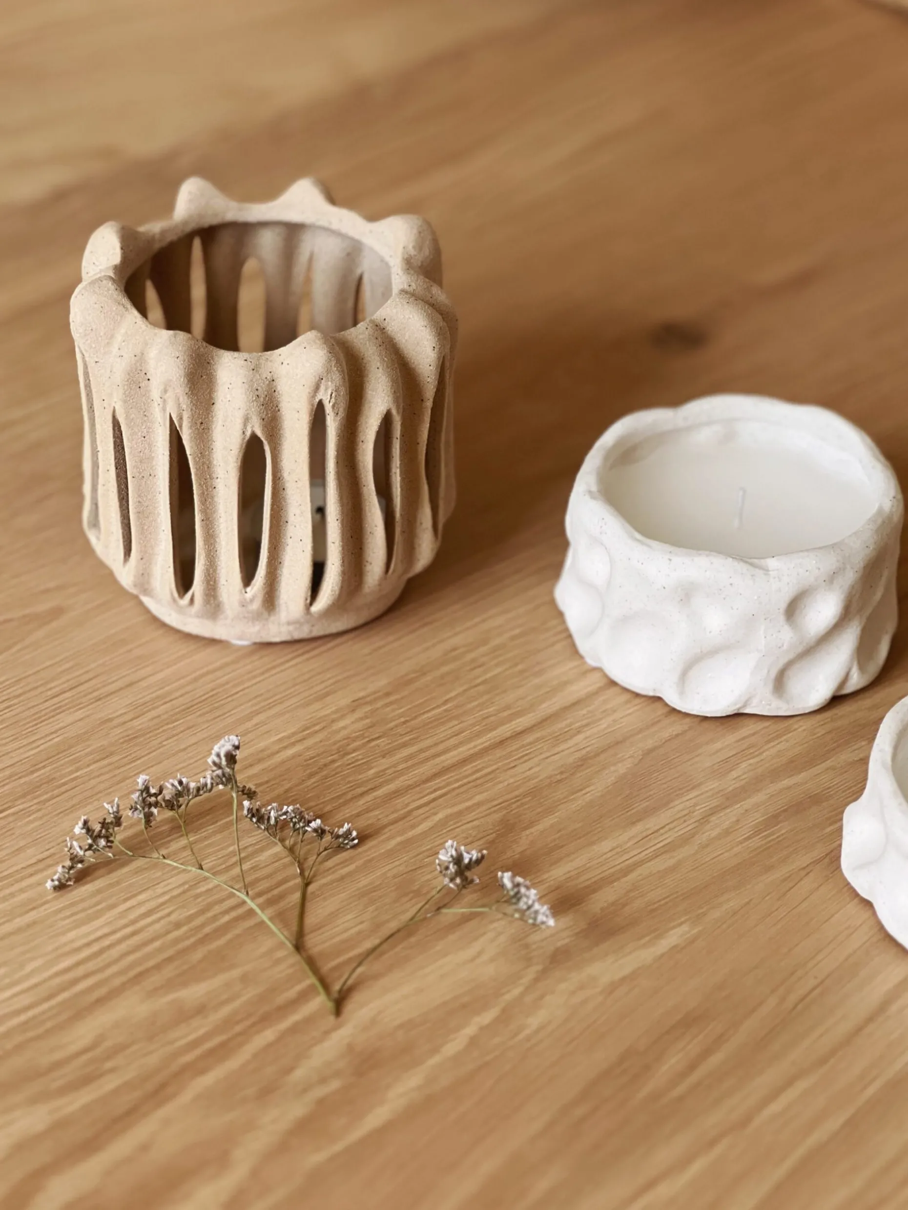 Bougeoir céramique beige qui sera parfait pour dresser vos bougies. Cet accessoire déco vous permettra de créer une ambiance cosy et agréable dans votre intérieur. Fabriqués en céramique ces bougeoirs dispose d’un design original.