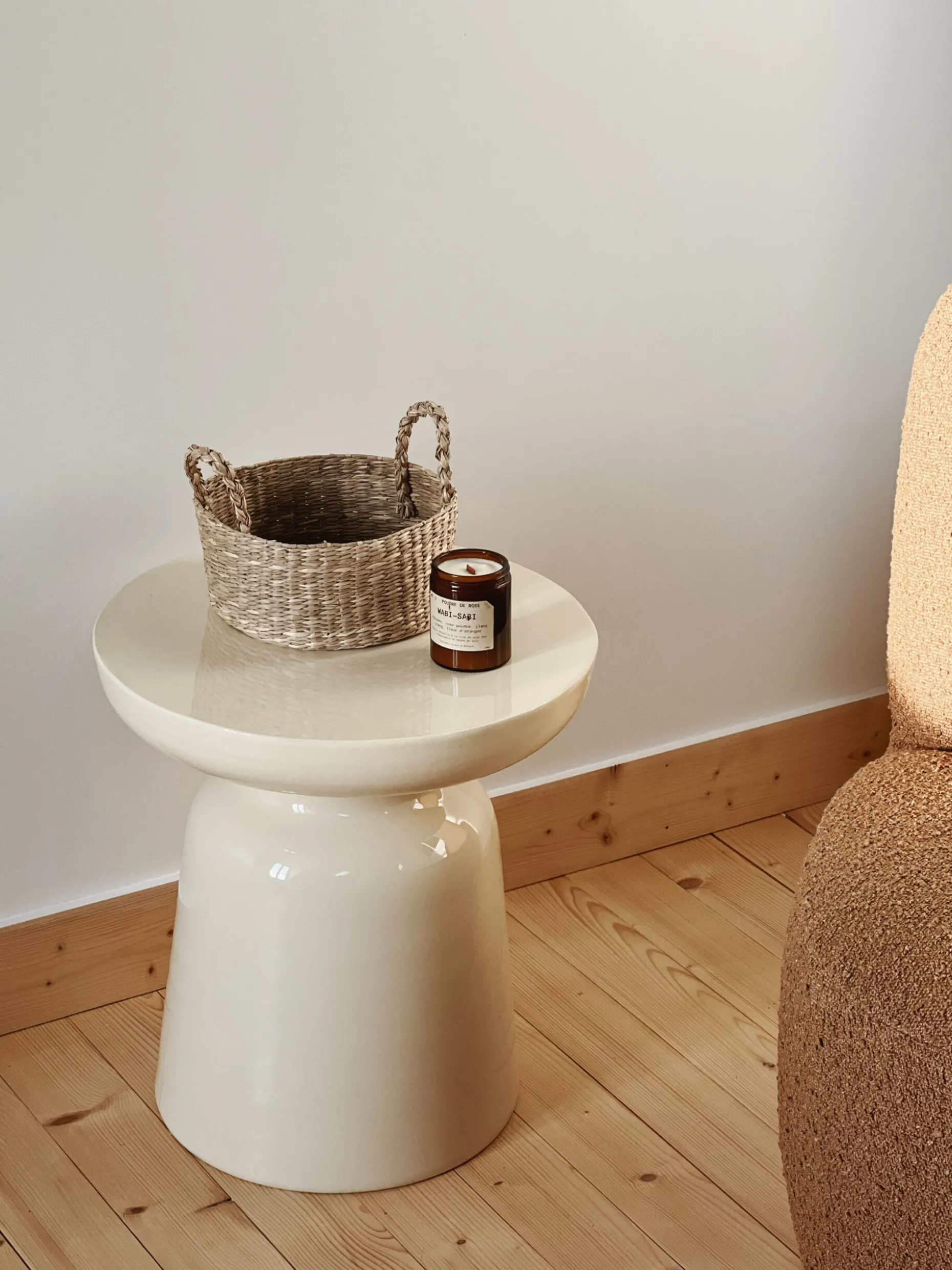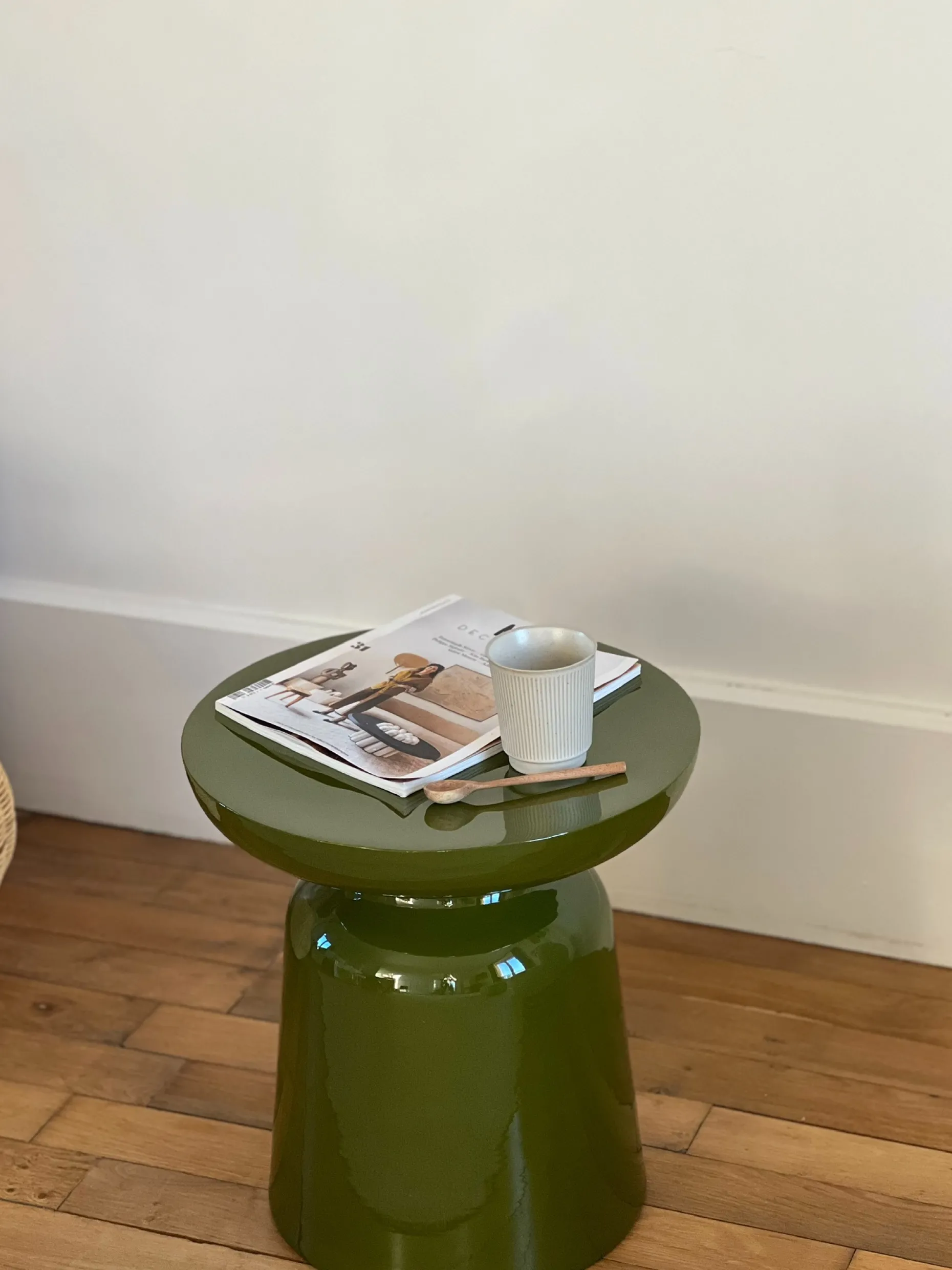 Bout de canapé/ sellette entièrement en métal au design minimaliste, finition émaillée, subtile pour les adeptes du slow life. Sa forme simple permettra à cette petite table d’appoint de trouver parfaitement sa place dans votre intérieur.