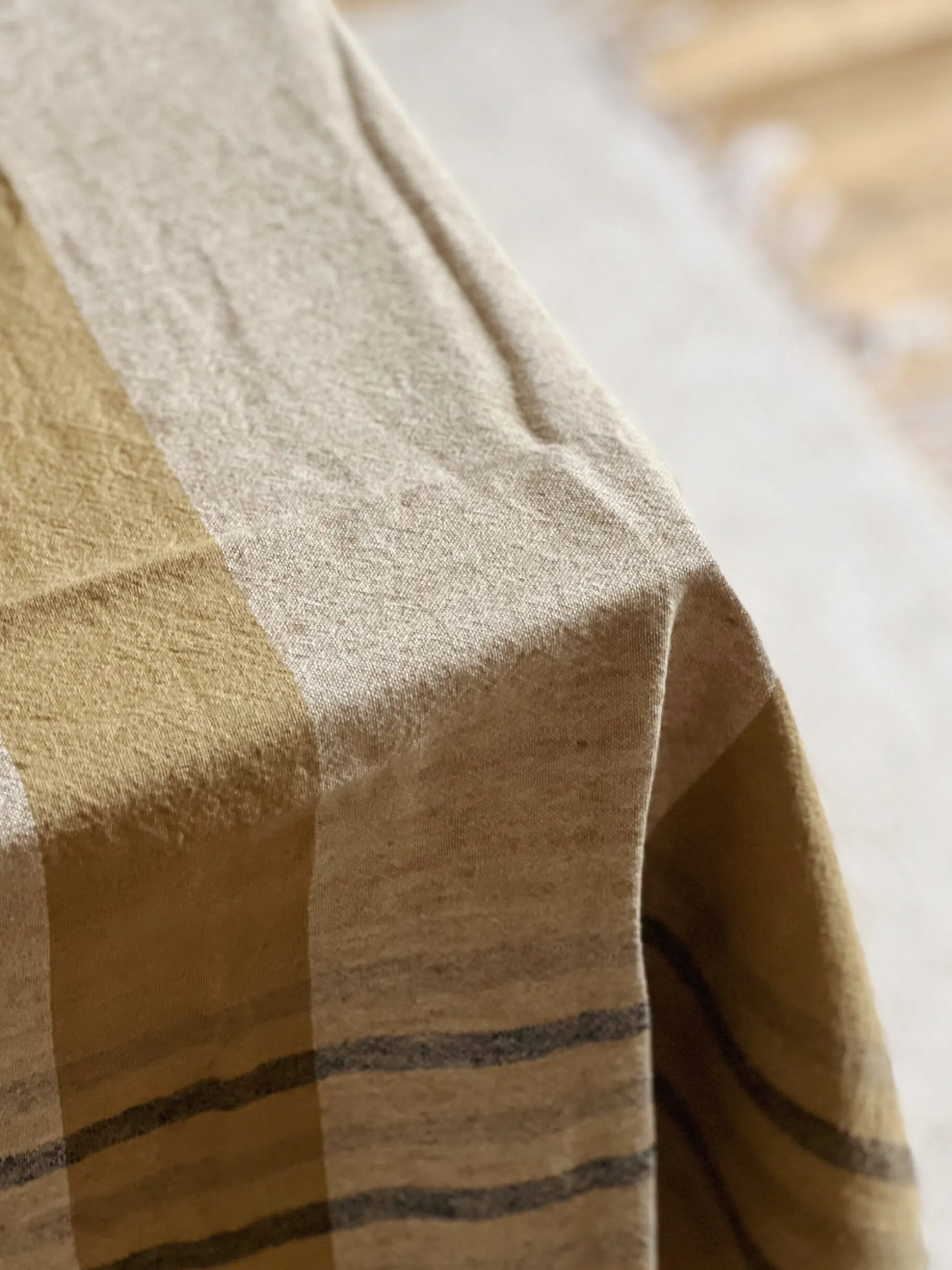 Nappe lin coton, son aspect légèrement froissé apportent un charme naturel et décontracté, parfait pour tous les moments de partage, du déjeuner quotidien aux repas festifs. Disponible en quatre tailles (160×250 cm, 170×350 cm et 170×300 cm), elle convient à des tables de toutes dimensions et se fond facilement dans différents styles de décoration.
