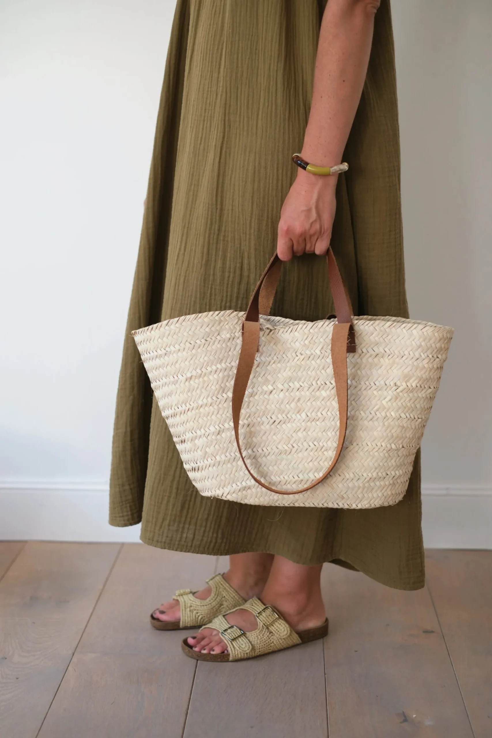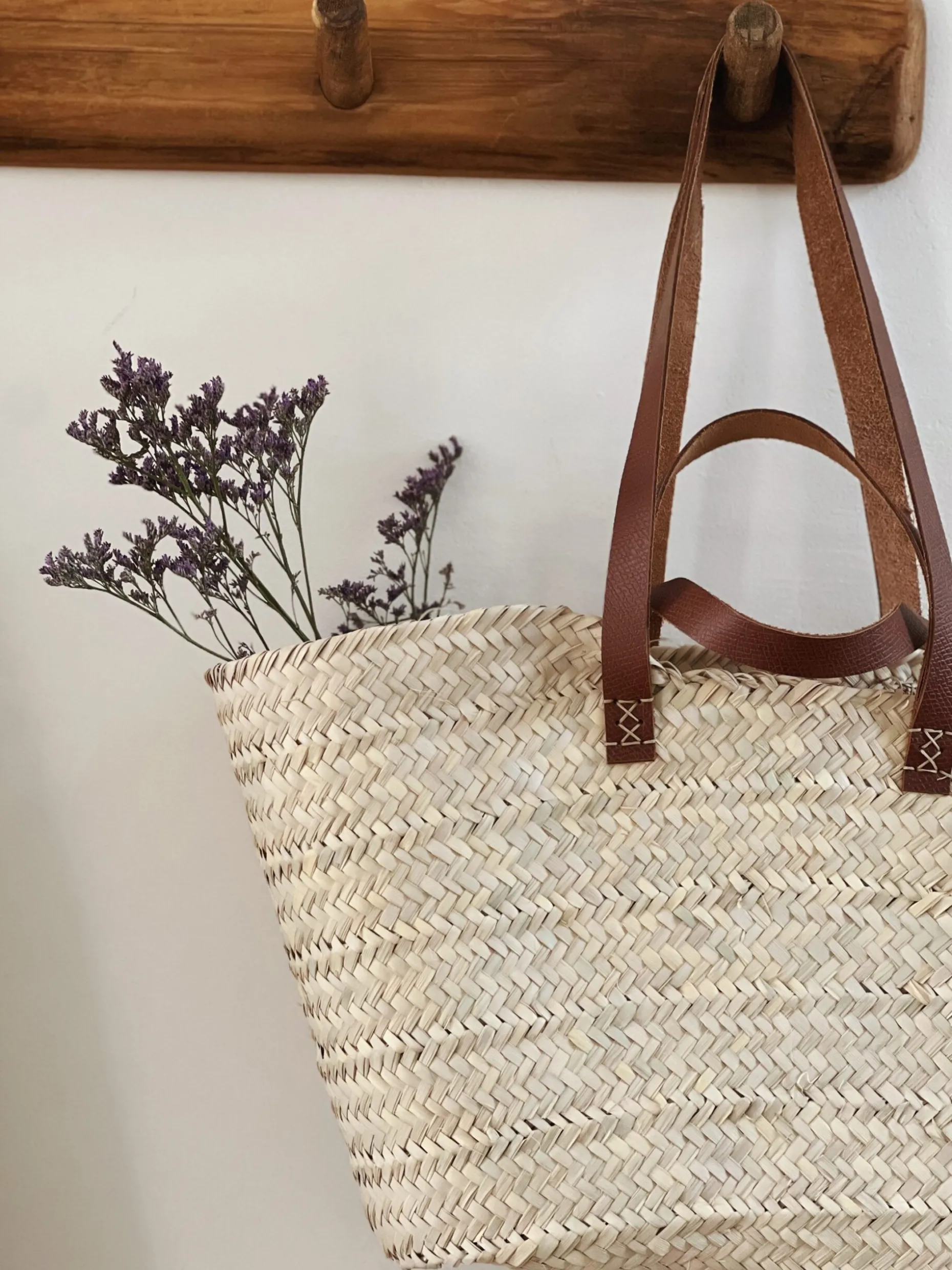 Aussi pratique qu’élégant, ce panier est fabriqué à la main en feuilles de palmier et les anses en cuir. Il est l’accessoire idéal pour aller faire vos courses. Léger et facile à transporter, il s’adapte à toutes vos envies et apporte une touche bohème à votre quotidien.
