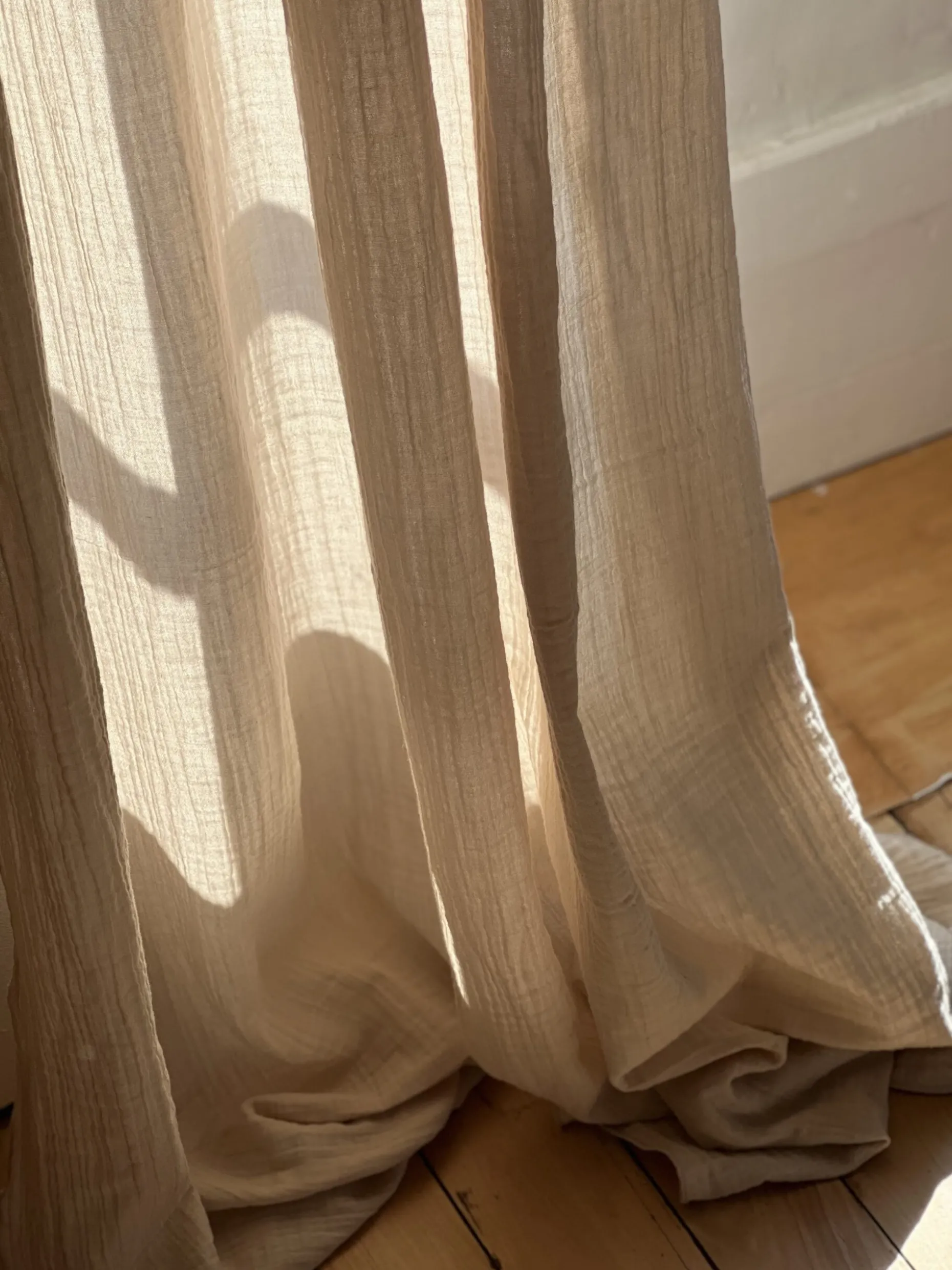 Idéal pour opacifier en douceur la lumière d’une chambre, d’un bureau ou encore d’un salon. Naturellement gaufré, ce rideau en gaze de coton ne nécessite pas de repassage.
