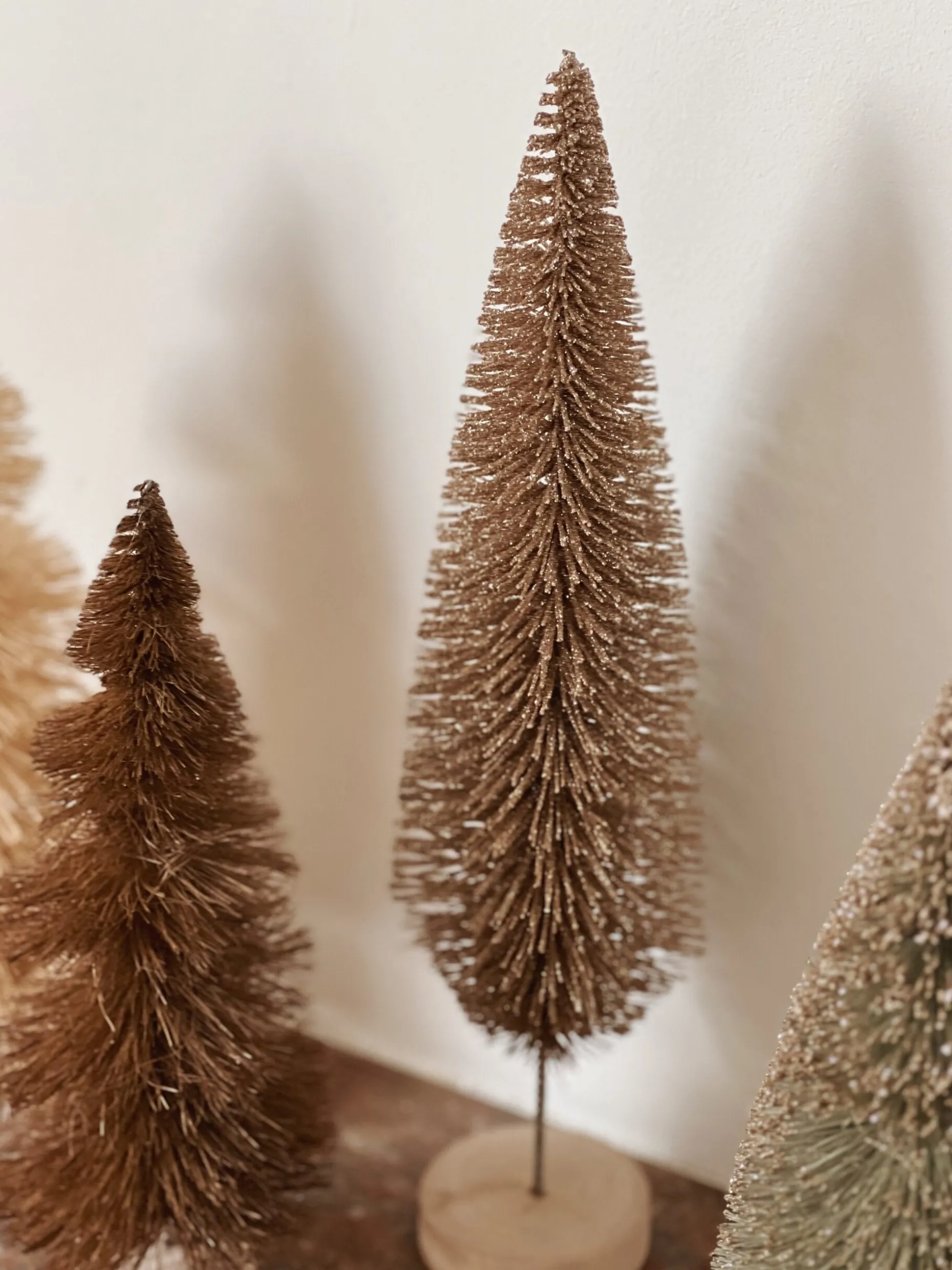 Utilisez le sapin déco pour votre décoration de Noël. Ces petits sapins décoratifs sont dans les tons marrons et verts. Certains Sant droits ou avec un joli effet de spirale.