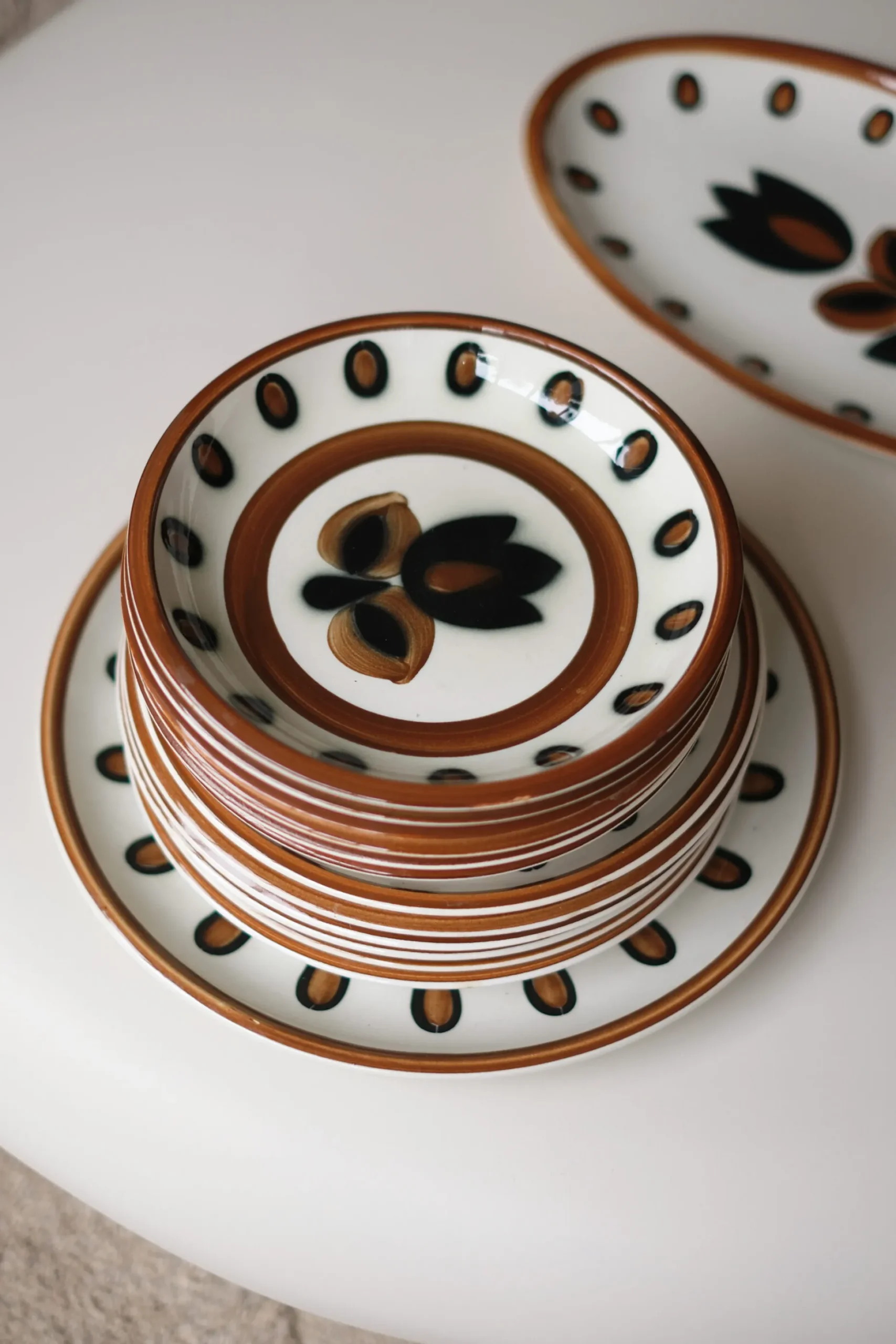 Découvrez ce magnifique service de vaisselle “Kimono” signé Boch, véritable trésor de la céramique belge des années 60. Cette collection emblématique, produite dans les ateliers prestigieux de La Louvière en Belgique, incarne l’excellence de la faïencerie européenne et le raffinement du design mid-century.