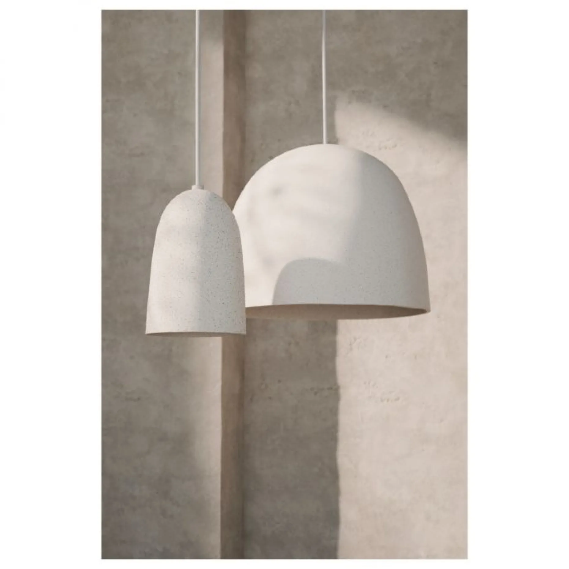 Fabriquée avec un grès distinct qui présente une texture granuleuse et brute, la suspension en céramique beige est composée d’un plafonnier en céramique avec un aspect naturel. Fabriquée à la main, la lampe a une silhouette fluide et organique.