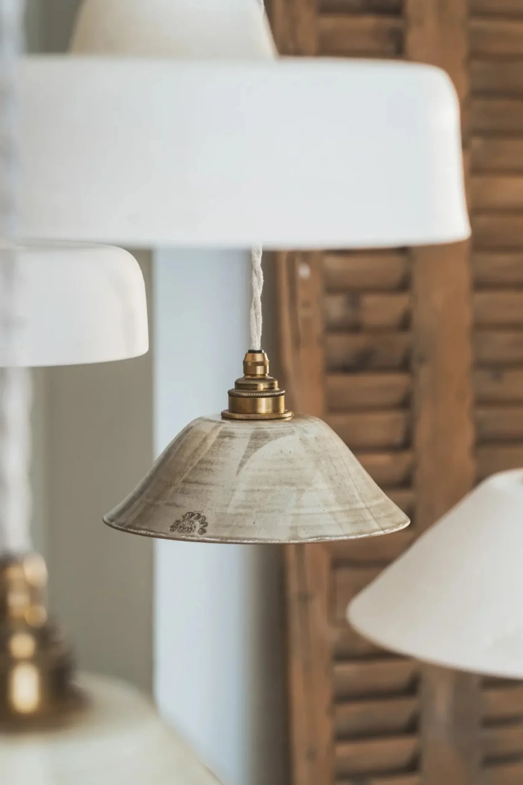 Tournée à la main par une artisane passionnée en Provence, la suspension Lisette Vert de Gris révèle toute la poésie de l’artisanat céramique français. Cette création délicate suit un processus de fabrication minutieux : après façonnage au tour de potier, elle sèche patiemment sous les oliviers méditerranéens avant sa première cuisson au four.