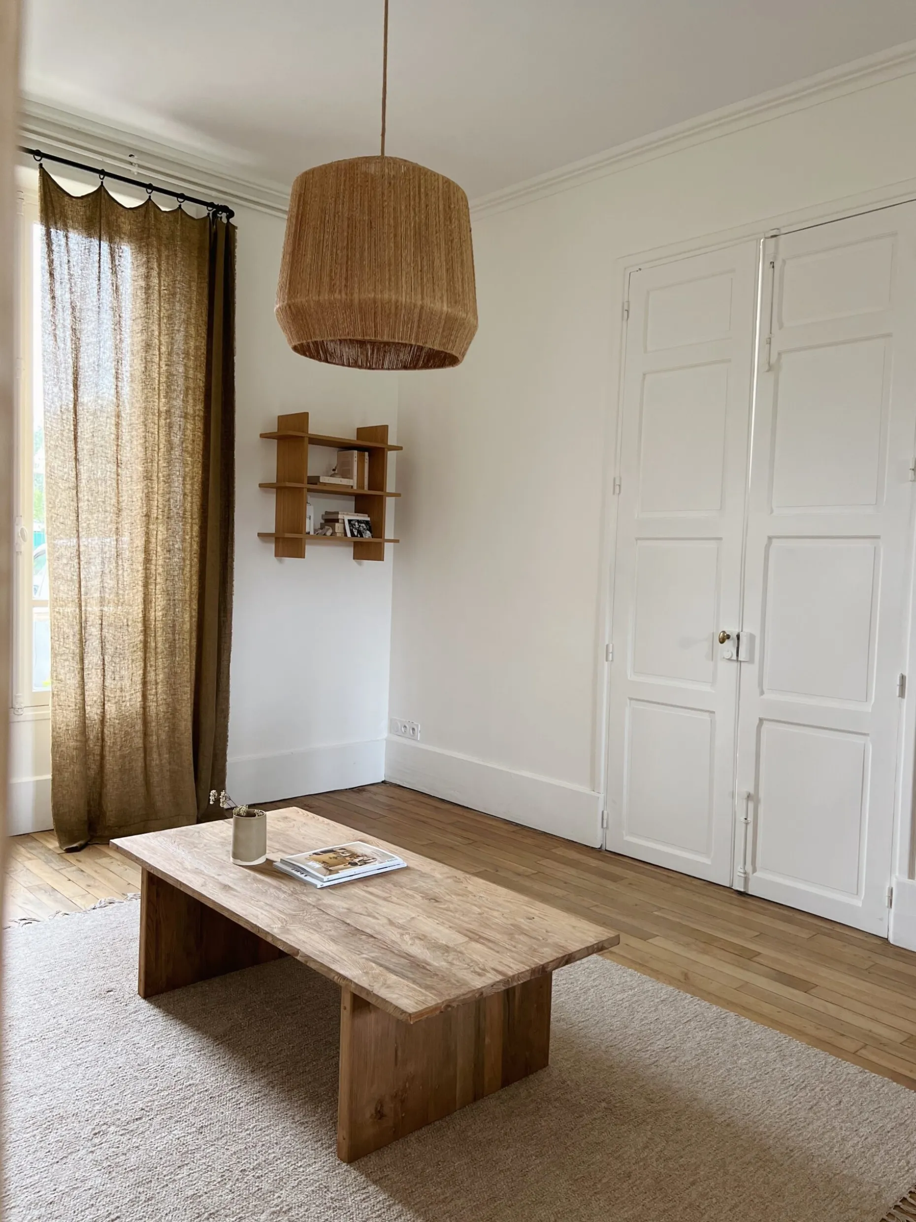 Fait main, donc les dimensions peuvent légèrement variées d’une pièce à l’autre, ainsi que quelques irrégularités dans le bois qui font partie intégrante de la table.