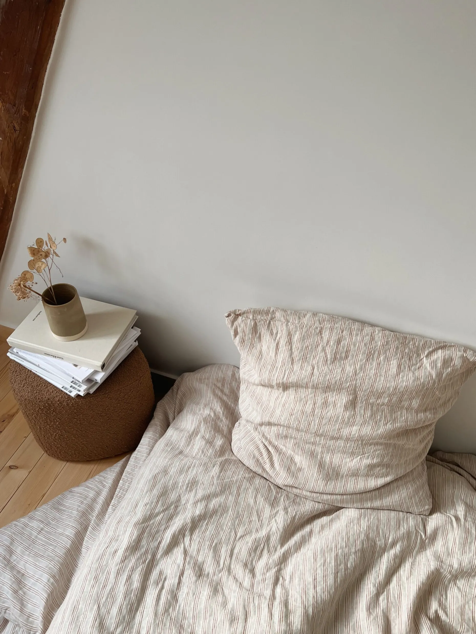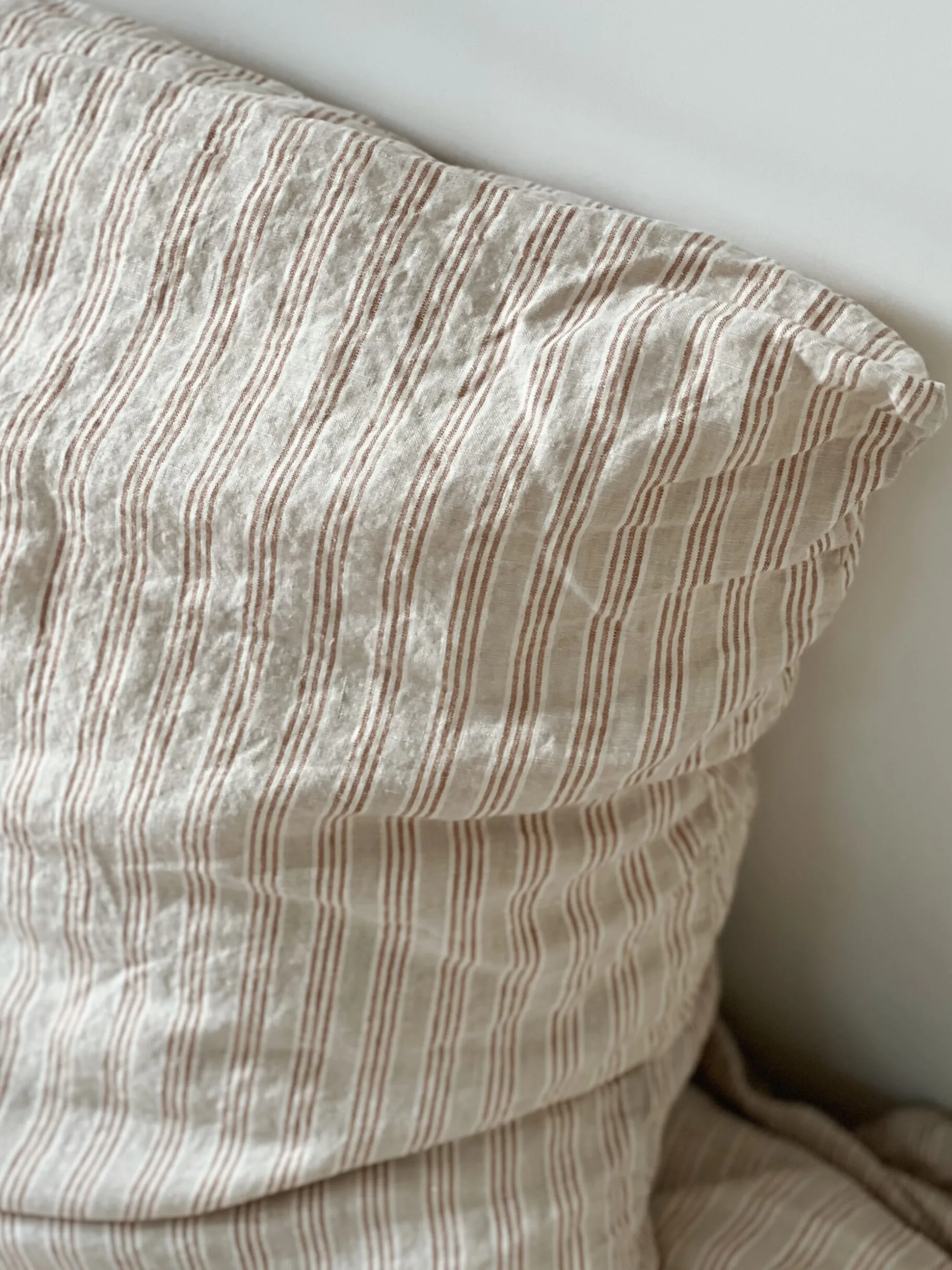 Paire de taies d’oreiller en lin lavé. Les taies sont composées à 100 % de fibres de lin européennes et ont été lavées à la pierre après couture, ce qui permet une sensation douce et confortable dès le début.