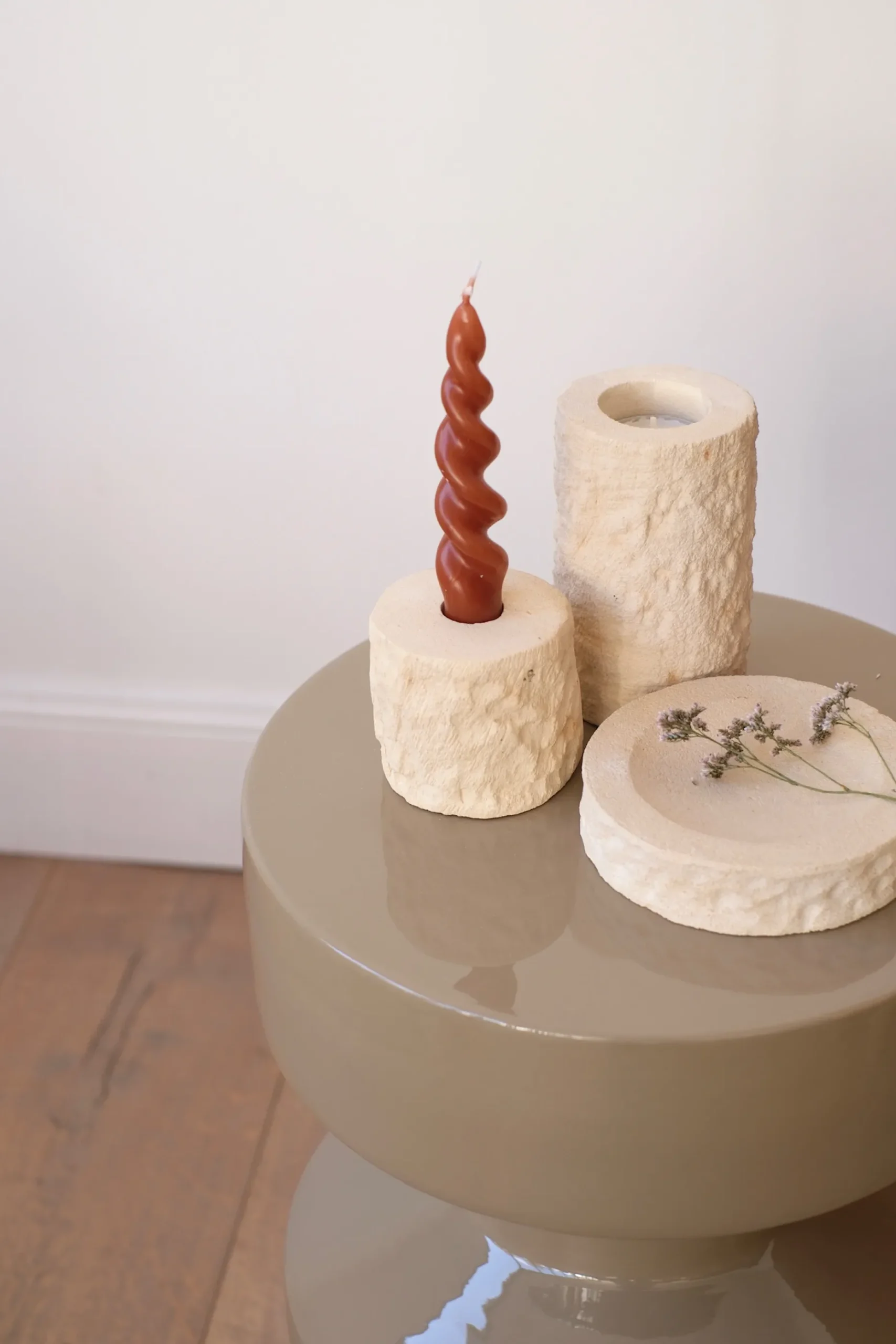Ce vide-poche en grès naturel célèbre la beauté brute des matériaux authentiques selon la philosophie wabi-sabi japonaise. Taillé et sculpté à la main dans une pierre de grès compactée naturellement, chaque pièce révèle des variations uniques de teintes beiges, crème et sable. Sa forme circulaire plate aux bords irréguliers volontairement imparfaits en fait une véritable petite sculpture minérale fonctionnelle.